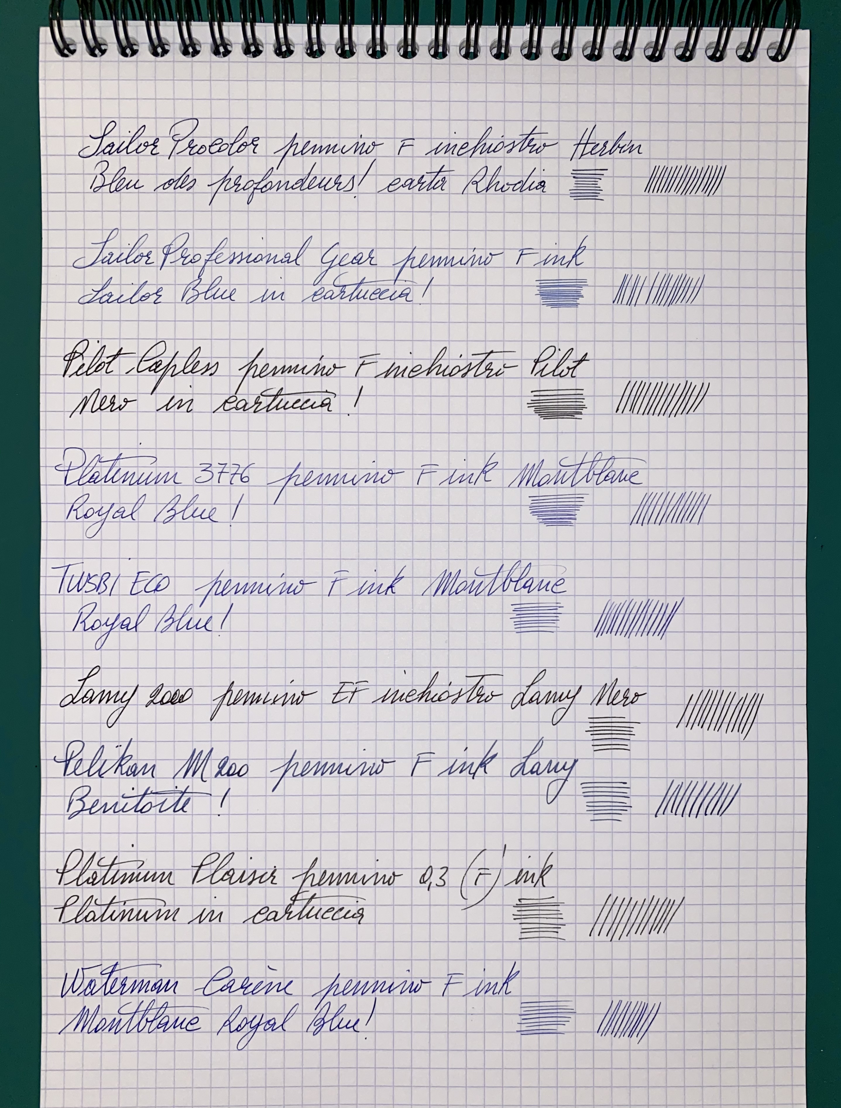 Il tratto EF è oggettivamente sottile ma non come una giapponese, per me che amo i sottili è già quasi al limite. Hai detto che ti va bene il Lamy F in acciaio. Penso che dovresti prendere l’ F altrimenti potrebbe essere troppo sottile per i tuoi gusti. C’è anche da dire che si sente parlare di pennini Lamy in acciaio F che scrivono come F e altri che scrivono come B. Perché non metti una foto con una piccola prova di scrittura della penna con cui ti trovi meglio su carta a quadretti da 5mm?