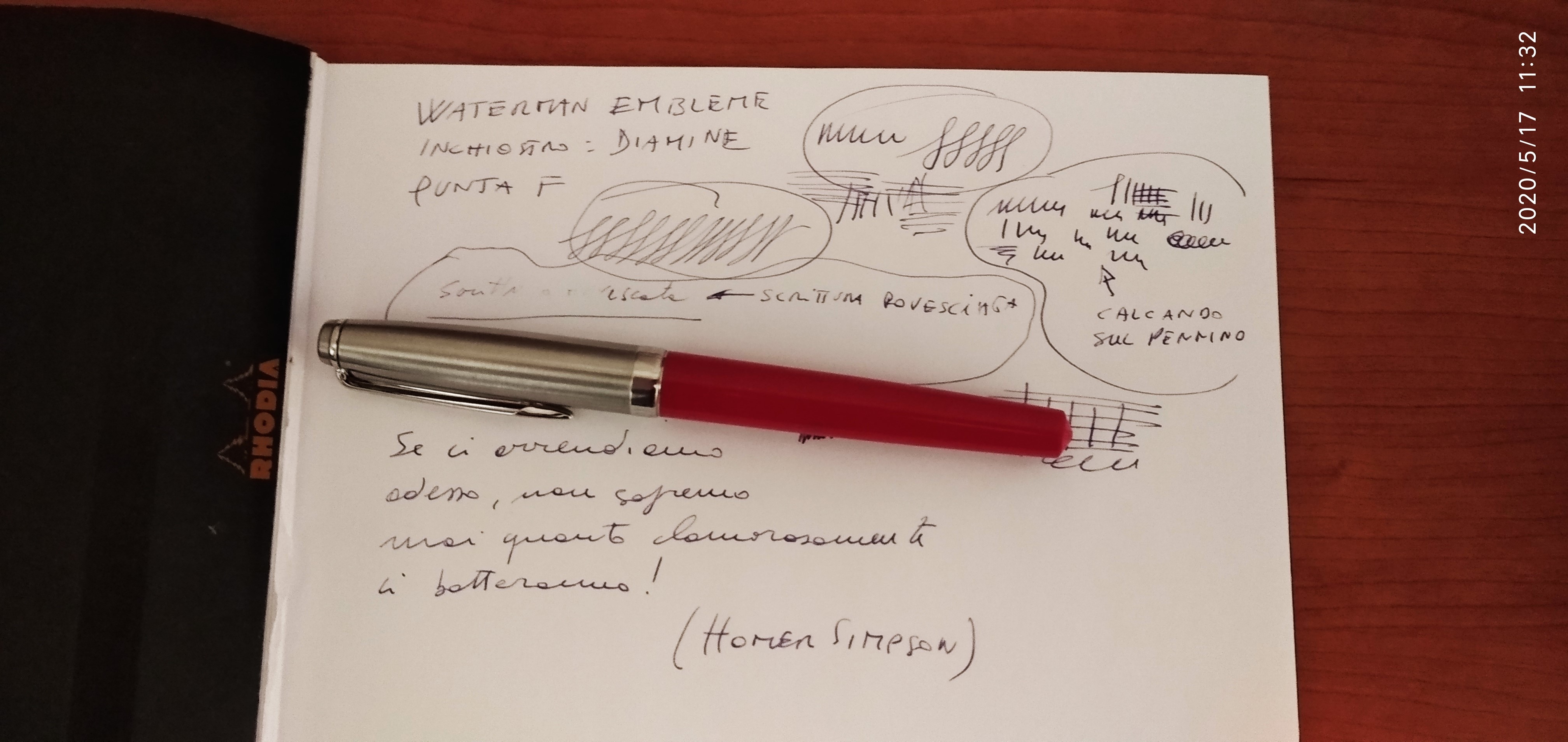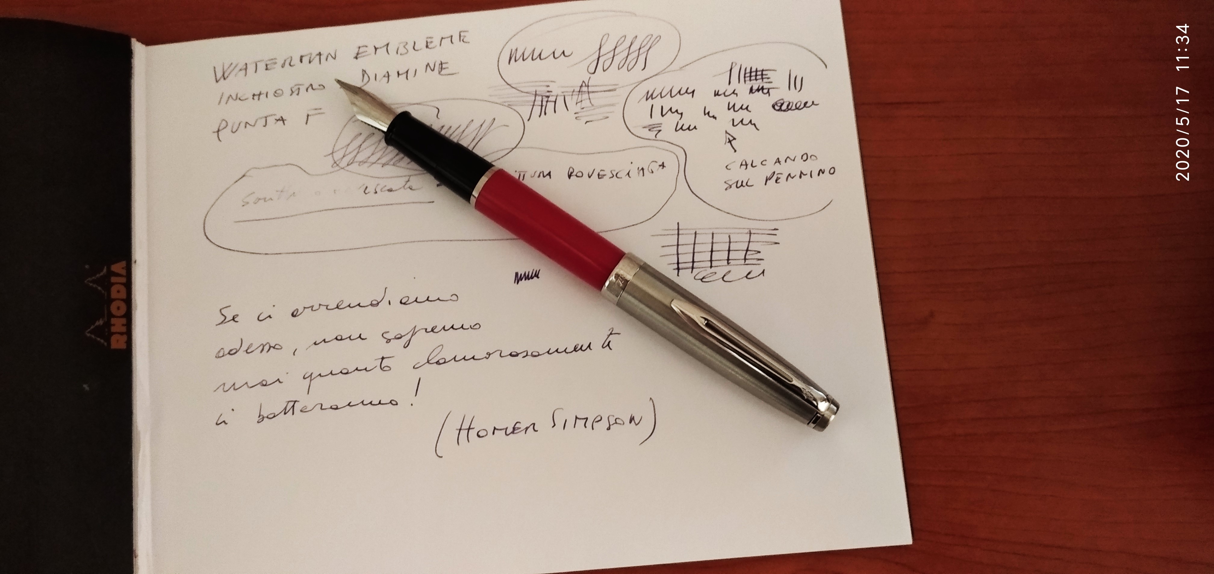 Ma se non accetta le cartucce standard, non fa per me. Vero che posso usare le Waterman, ma l'unico inchiostro Waterman che uso in cartucce è il blu-nero (Mysterious) che ha bisogno di penne dal flusso un pelo abbondante per esprimersi al meglio.