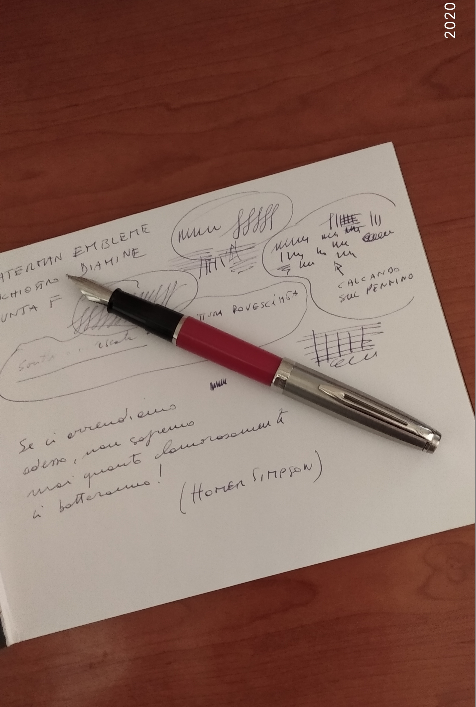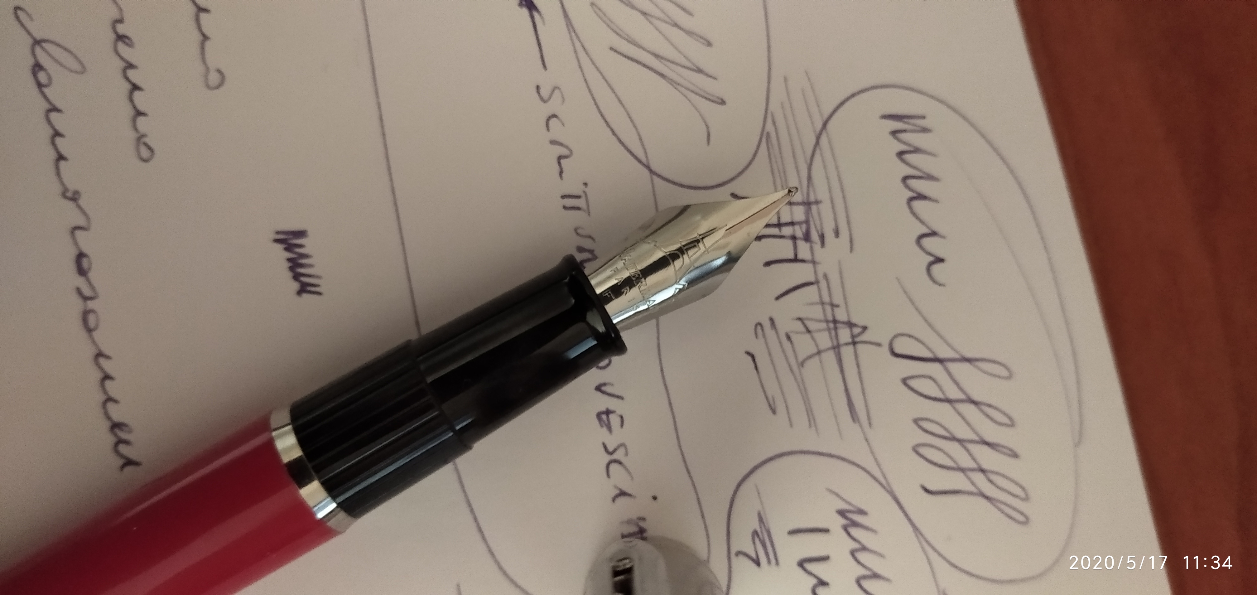 Devo avere avuto professionalità e competenza, in altre parole una sana botta di c... perchè il mio esemplare scrive senza incertezze, flusso medio, in pratica esattamente come la mia Graduate, pennino F e tratto F eruropeo, alias medio giapponese.