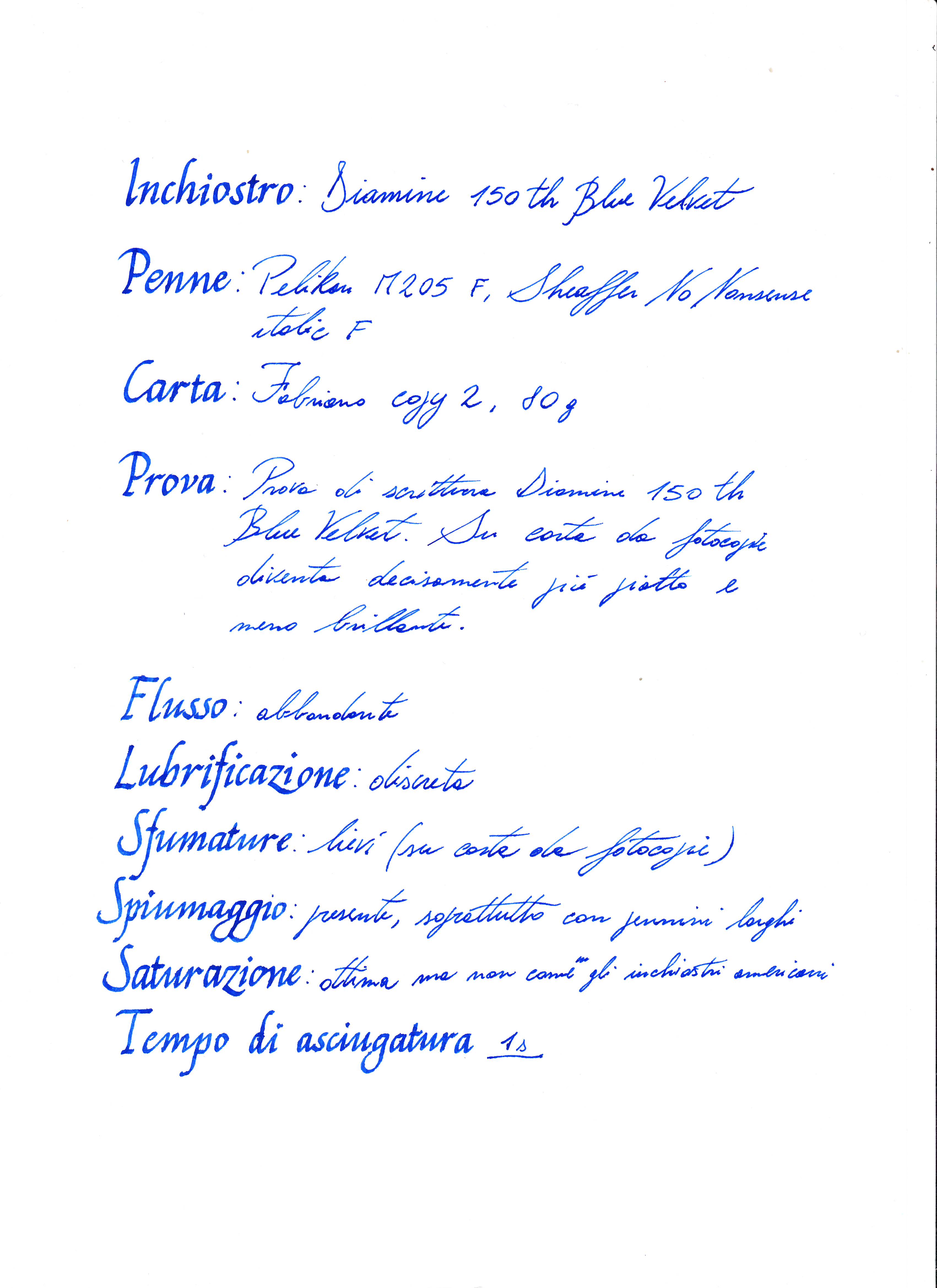 - Il mio inchiostro preferito: Diamine 150th Blue Velvet