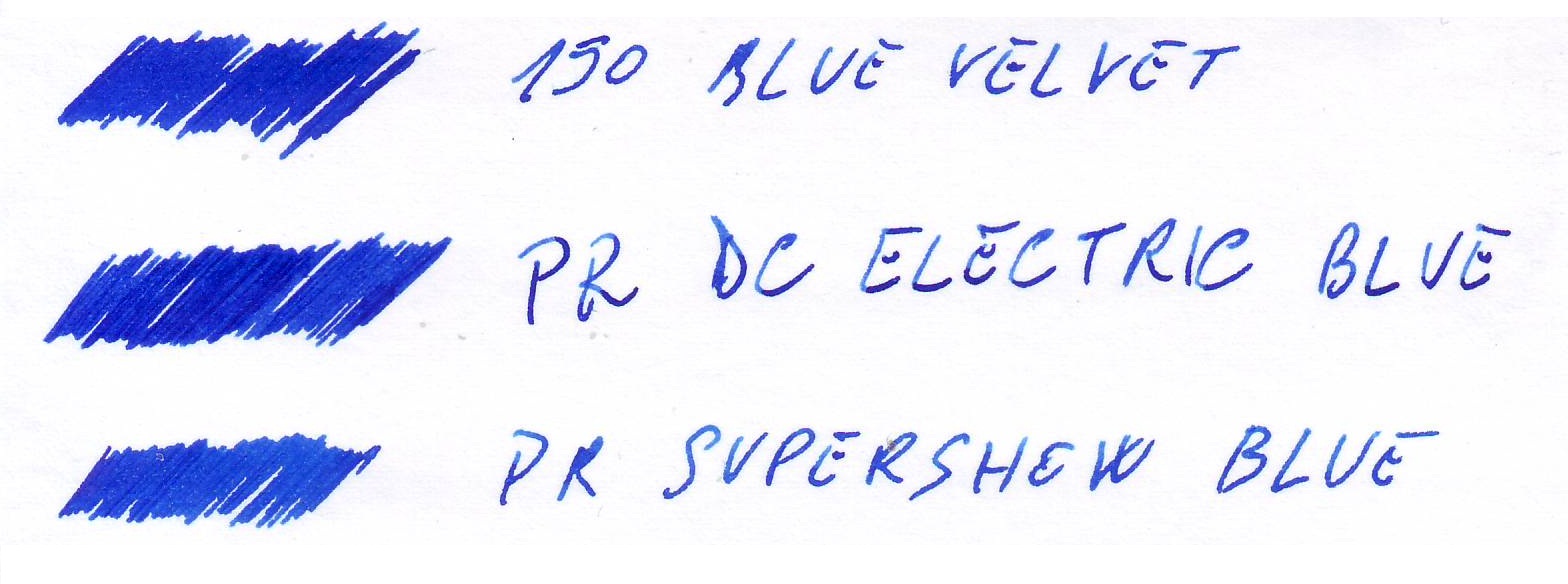 Diamine 150th Anniversary Blue Velvet vs Private Reserve Electric DC Blue