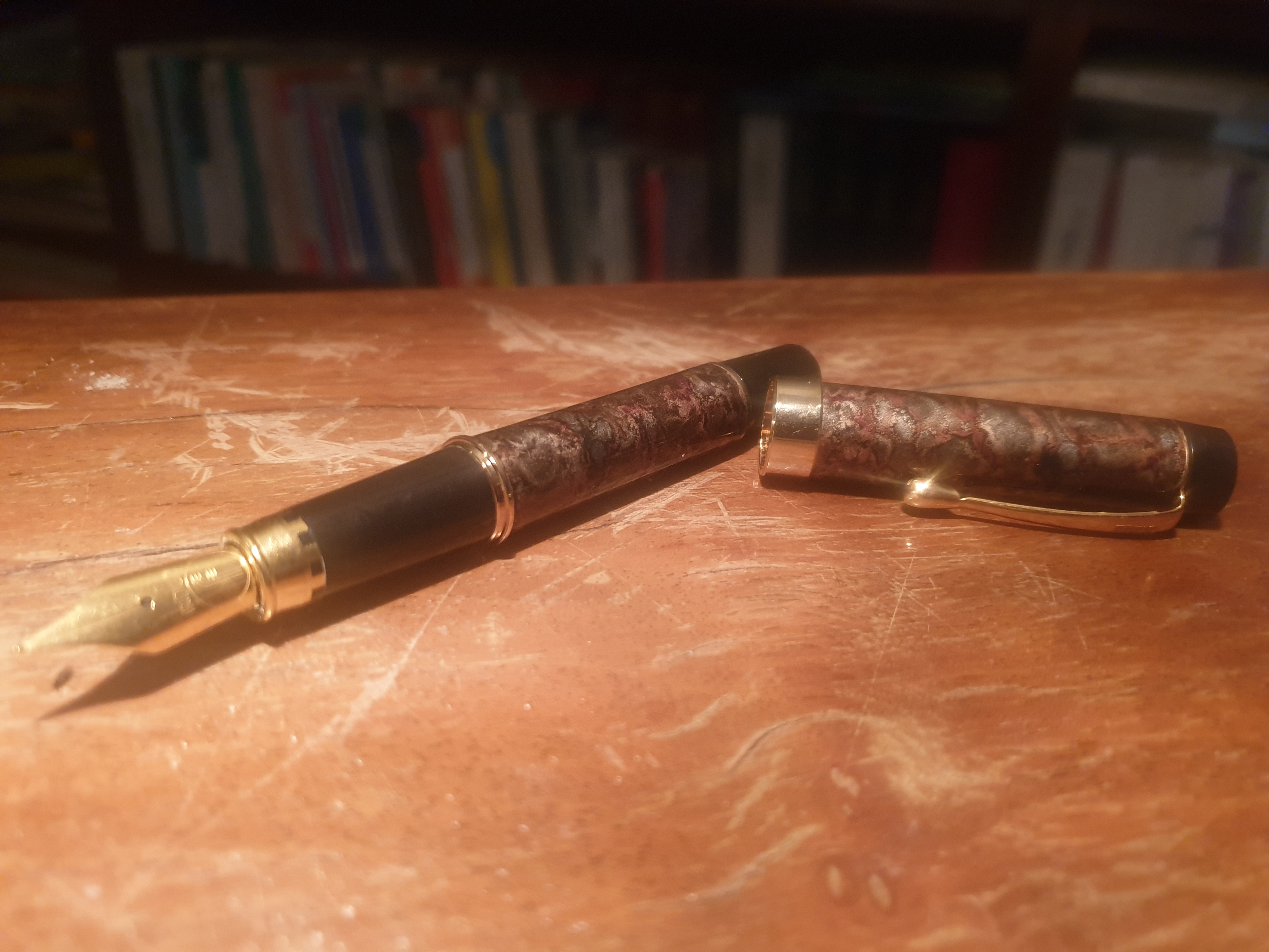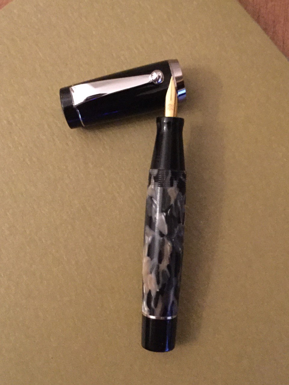 Questa è un'altra Leader 1918 in versione marrone marmorizzato, acquistata qualche anno fa.Spiller84 ha scritto: ↑giovedì 10 dicembre 2020, 17:50 Ecco la mia, credo sia anche essa una Leader. È in ottone laccato (come suggerisce la O di F.I.L.C.A.O.). Scrive molto bene e scorrevolmente, pur mantenendo un feedback che fornisce un maggiore controllo della scrittura. Flusso medio non troppo abbondante, decisamente non stitico. Monta cartucce o converter di tipo Pelikan, il nottolino nero posteriore, anche esso in ottone, si svita consentendo di ricaricare un converter senza svitare tutto il fusto. In questo modo però non si vede il livello di carica raggiunto, ovviamente. È grande quanto una Pelikan M200 con cui la ho messa a confronto, pur essendo un po' più "cicciona" e ovviamente più pesante essendo in ottone.