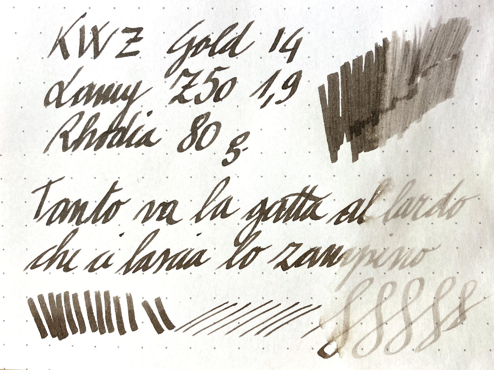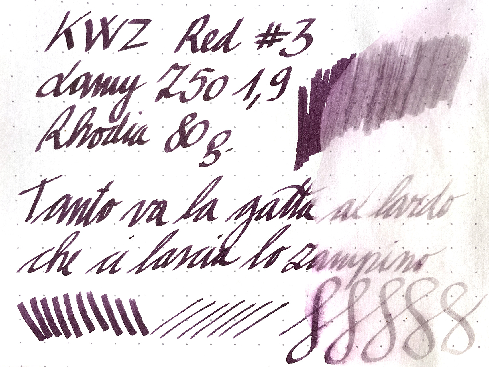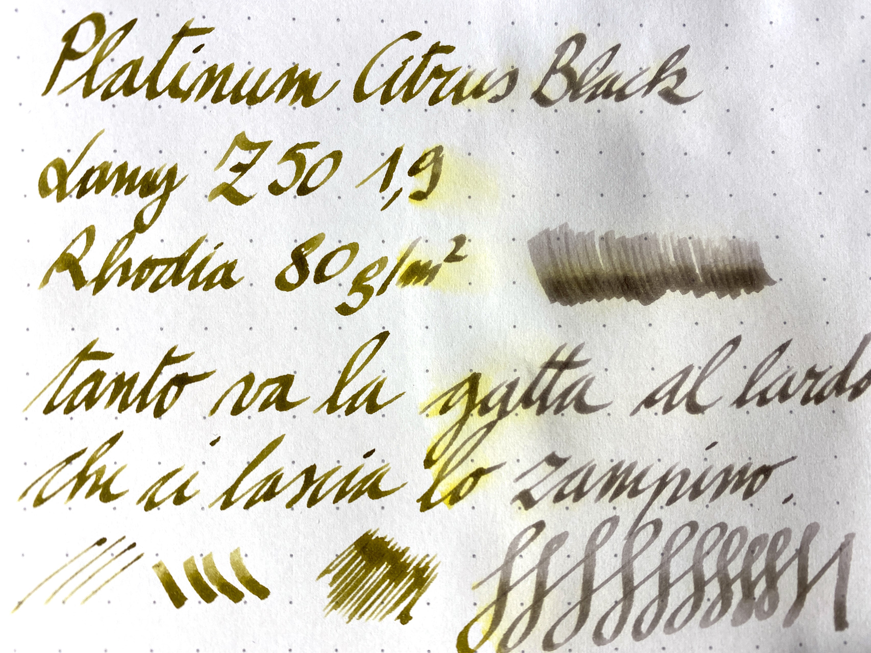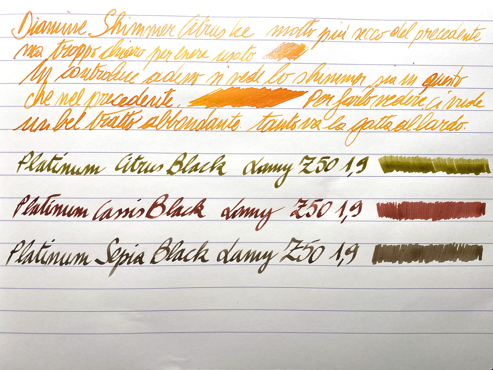Tre prove di inchiostri non ancora inseriti in lista: Platinum linea Classic, ferrogallici.