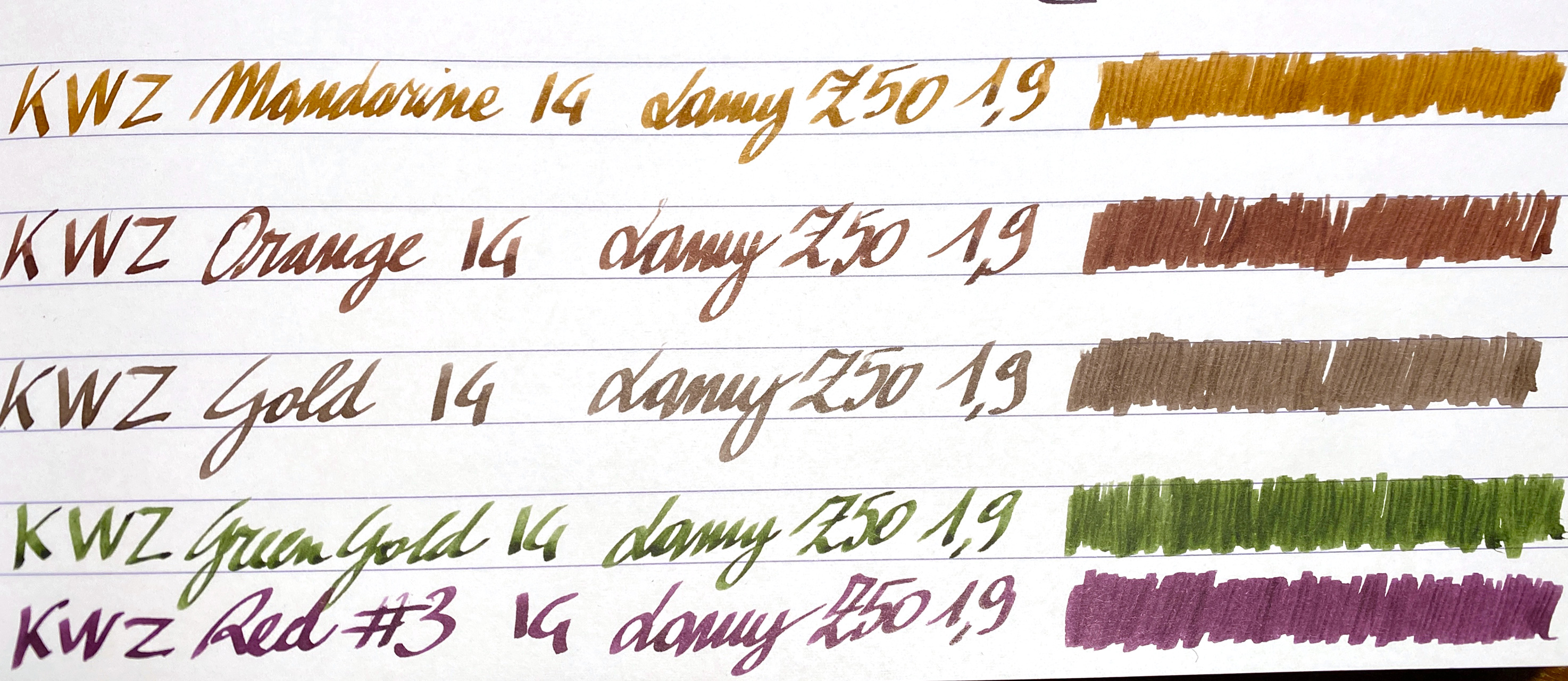 Atri cinque inchiostri, questa volta tratti dal catalogo KWZ, linea IG (ferrogallici).