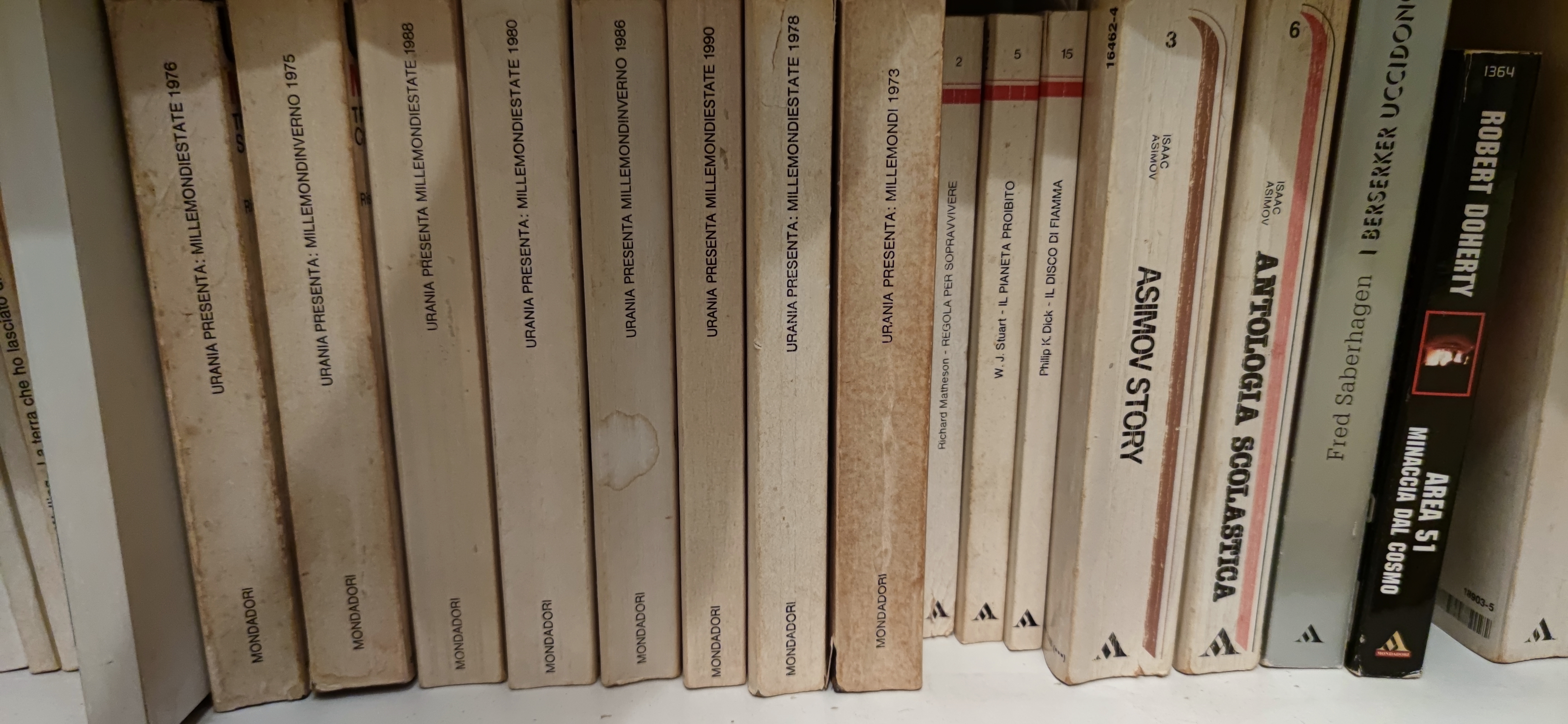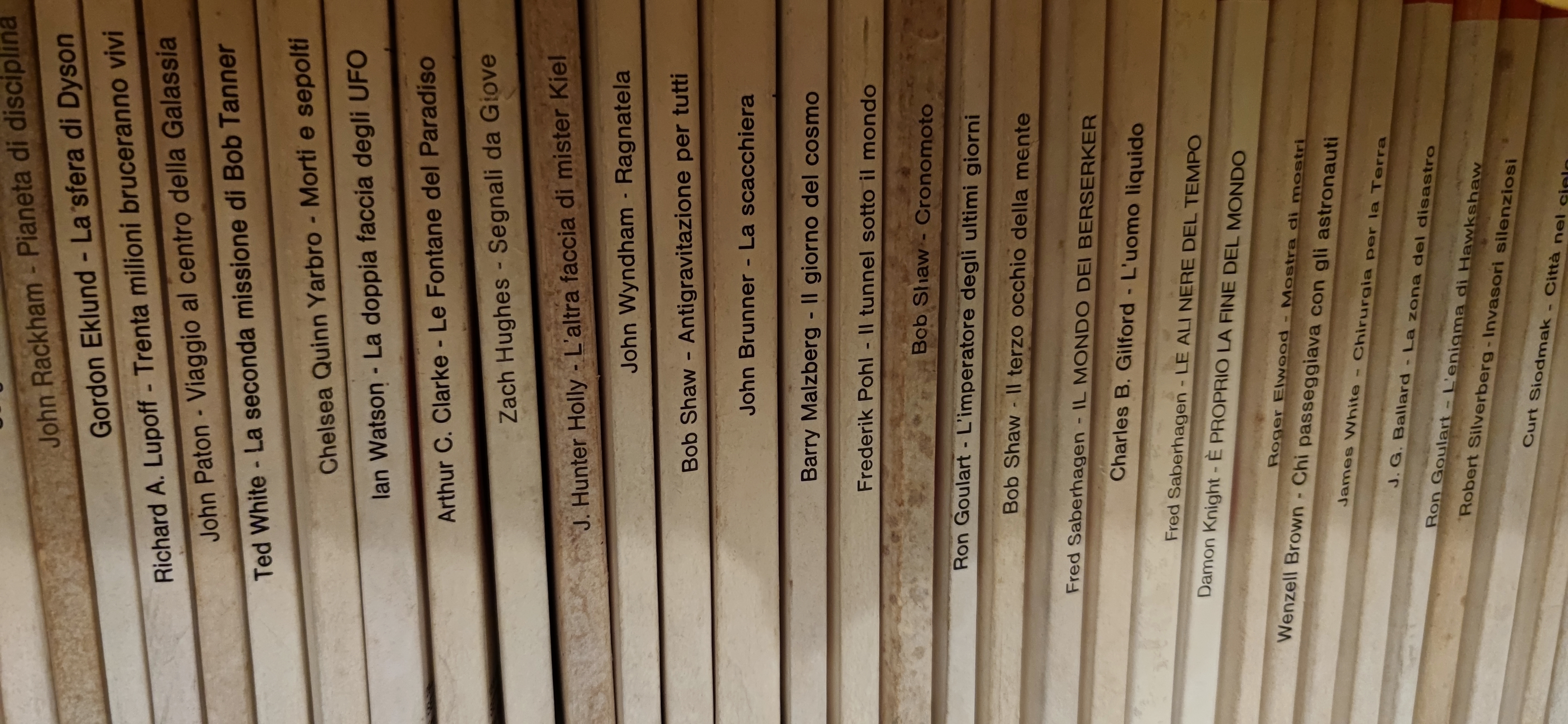 Avendo conservato i circa 1.200 ÷ 1.500 volumi riguardanti la Fantascienza, ora che con l'incremento degli anni mi ritrovo un decremento di memoria, ho il non trascurabile vantaggio di poterli rileggere come fossero nuovi.