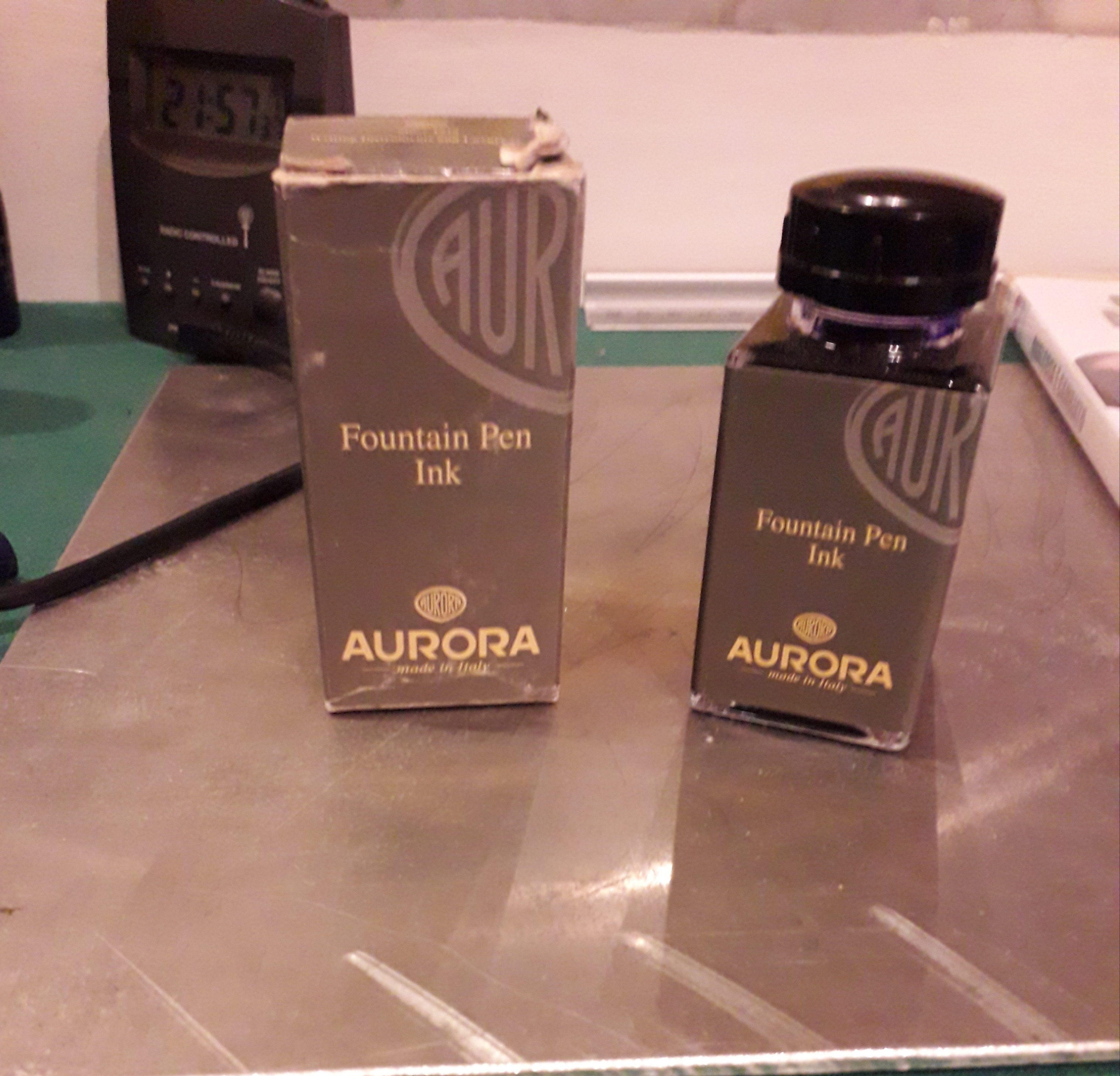 Ho acquistato in mattinata questo calamaio di Aurora bleu, ma i colori della scatola e dell'etichetta mi sono nuovi.