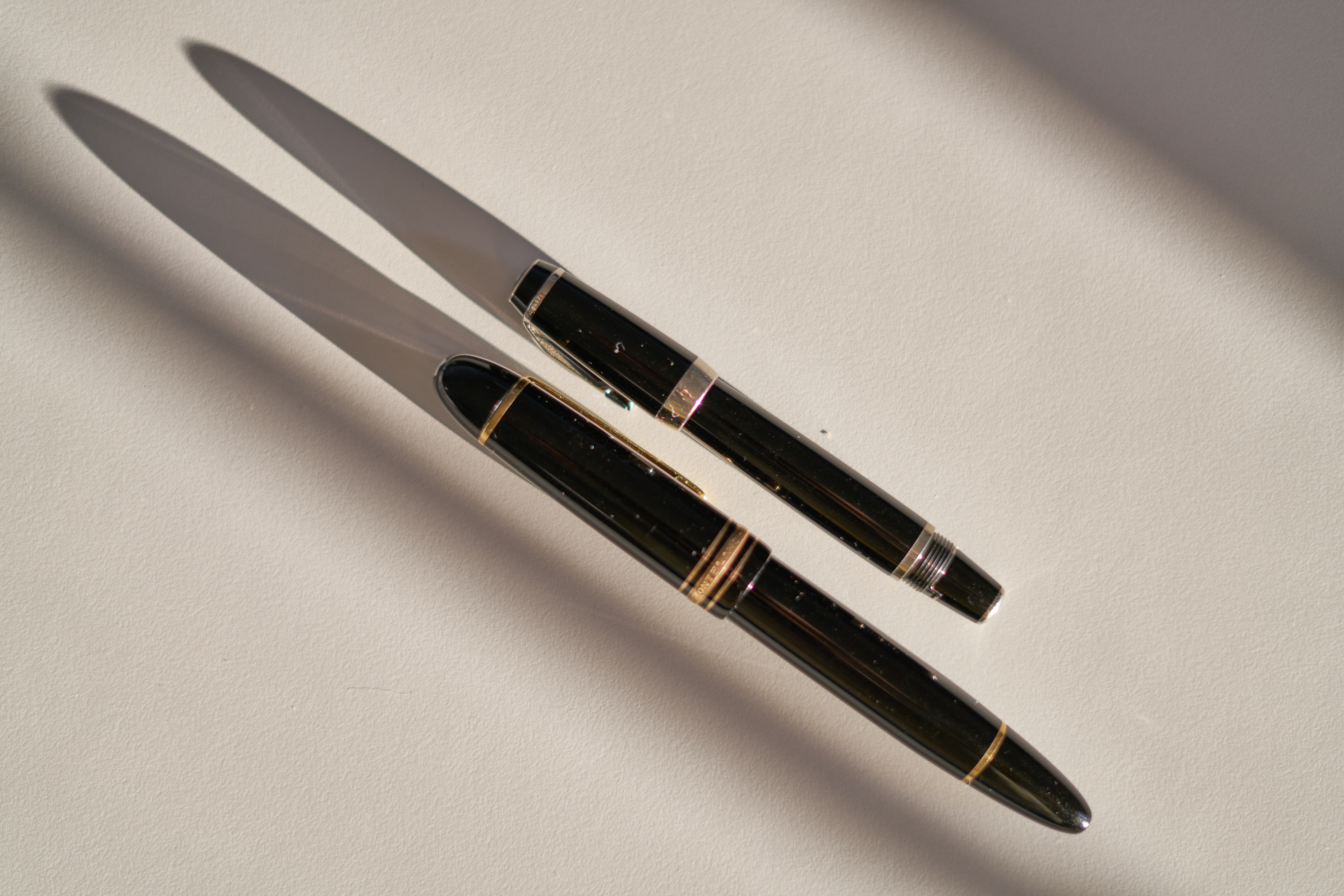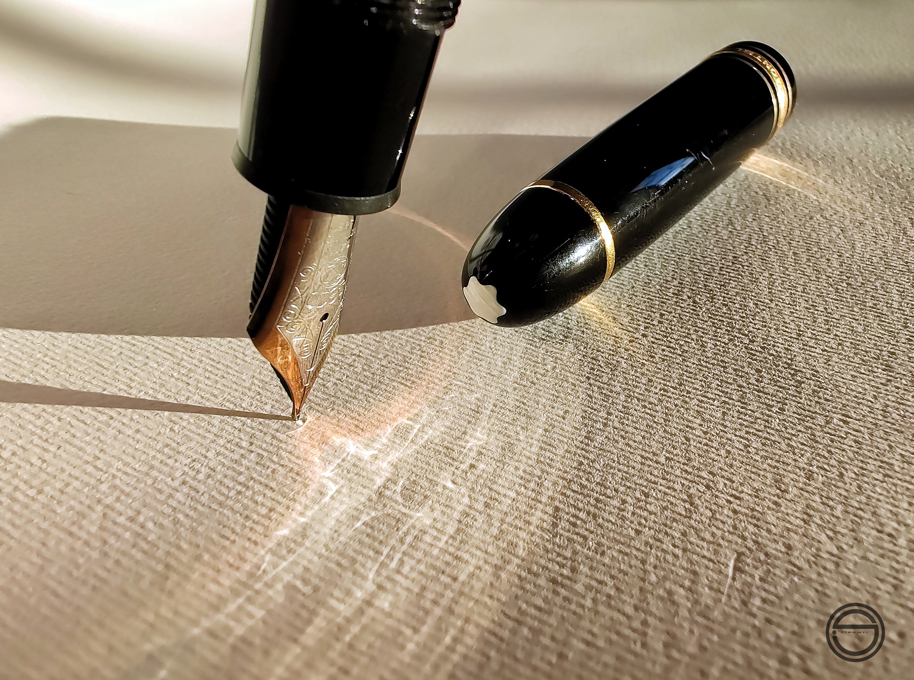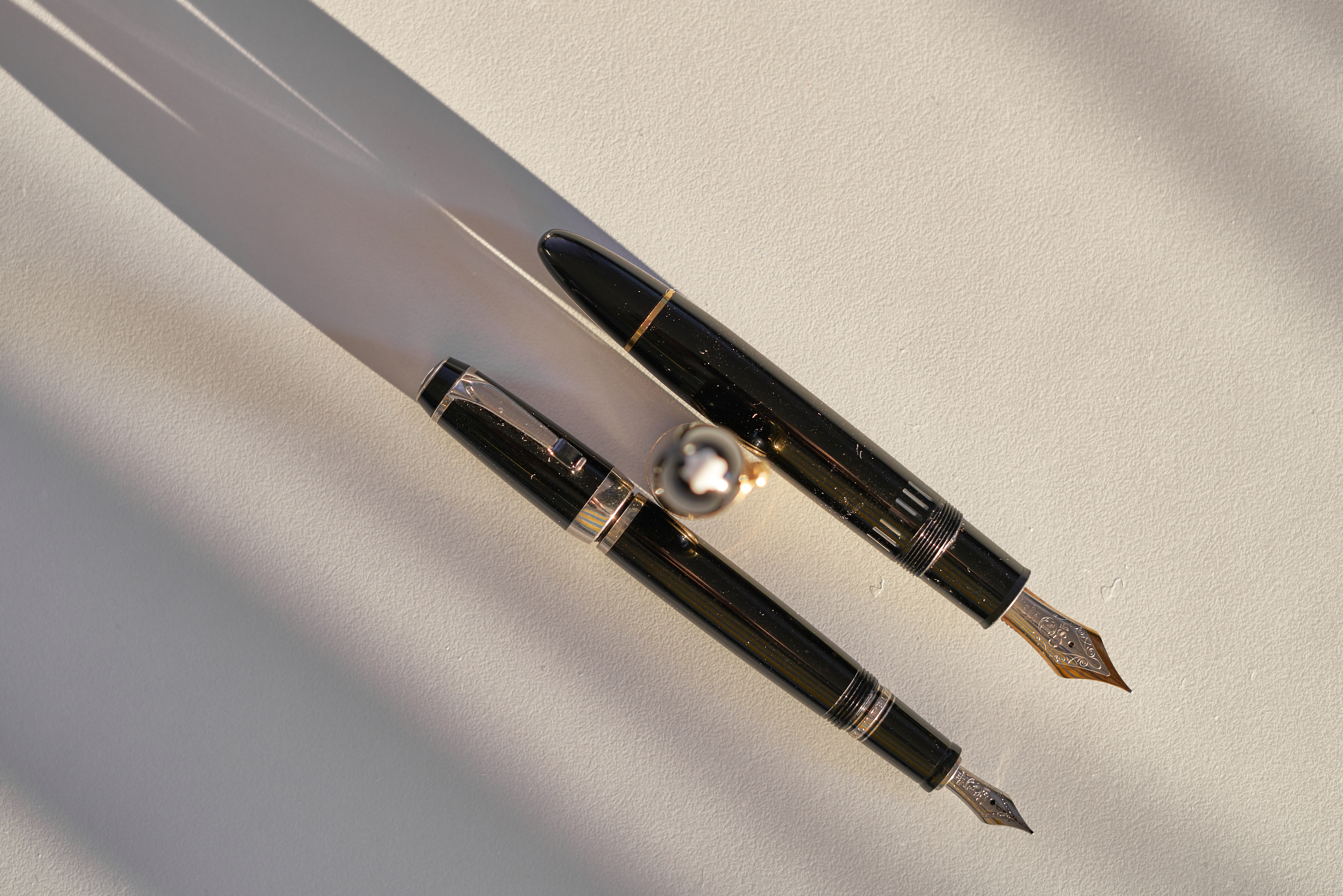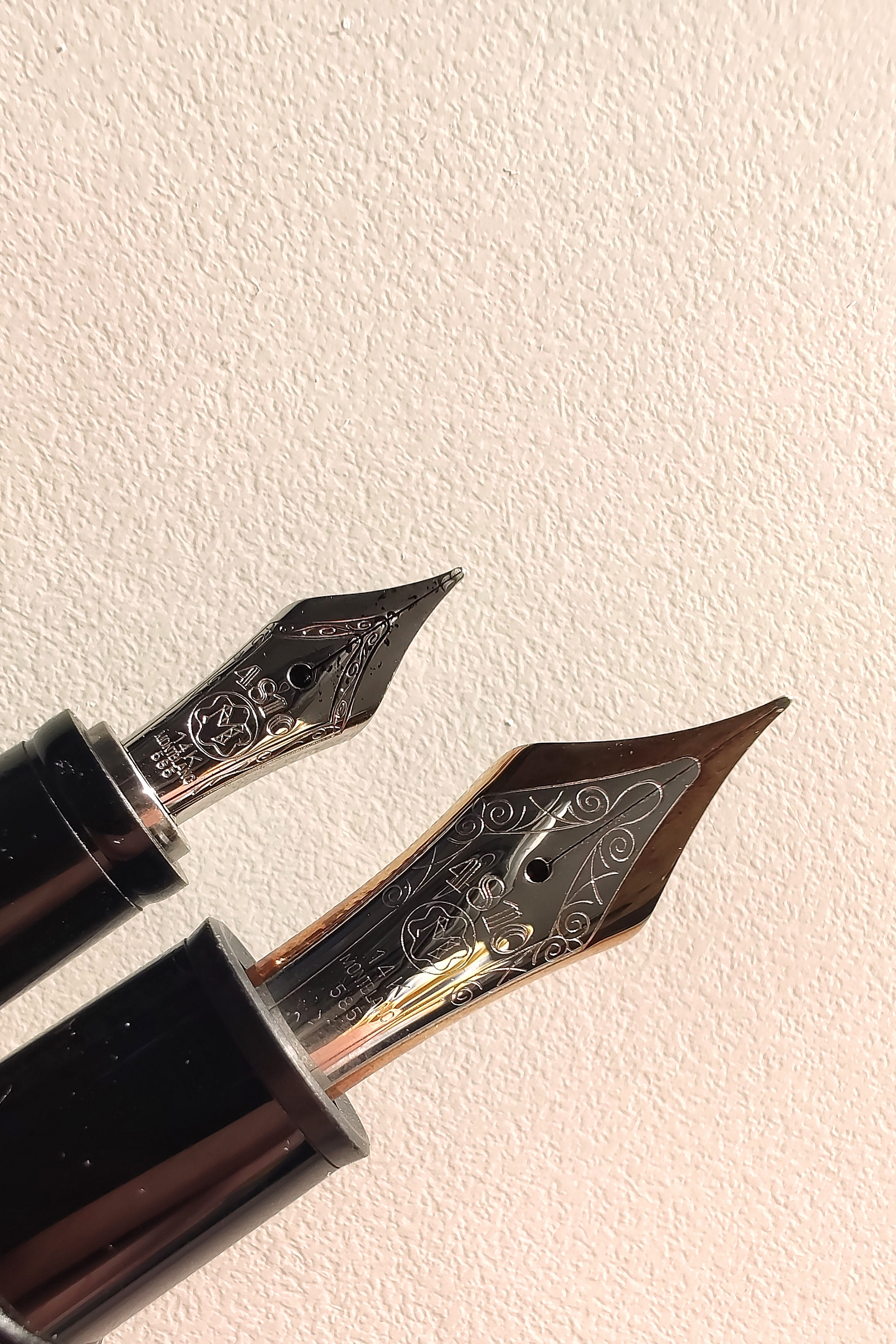 L'imponenza del pennino della 149 vince a mani basse. Nel mio caso entrambi hanno tratto Fine ed entrambi sono molto piacevoli. A parità di inchiostro quello della 149 mi sembra scorra un po' meglio, complice forse qualche falsa partenza della piccolina, problema invece mai riscontrato con la 149. Spero di risolvere il problema cambiando inchiostro.
