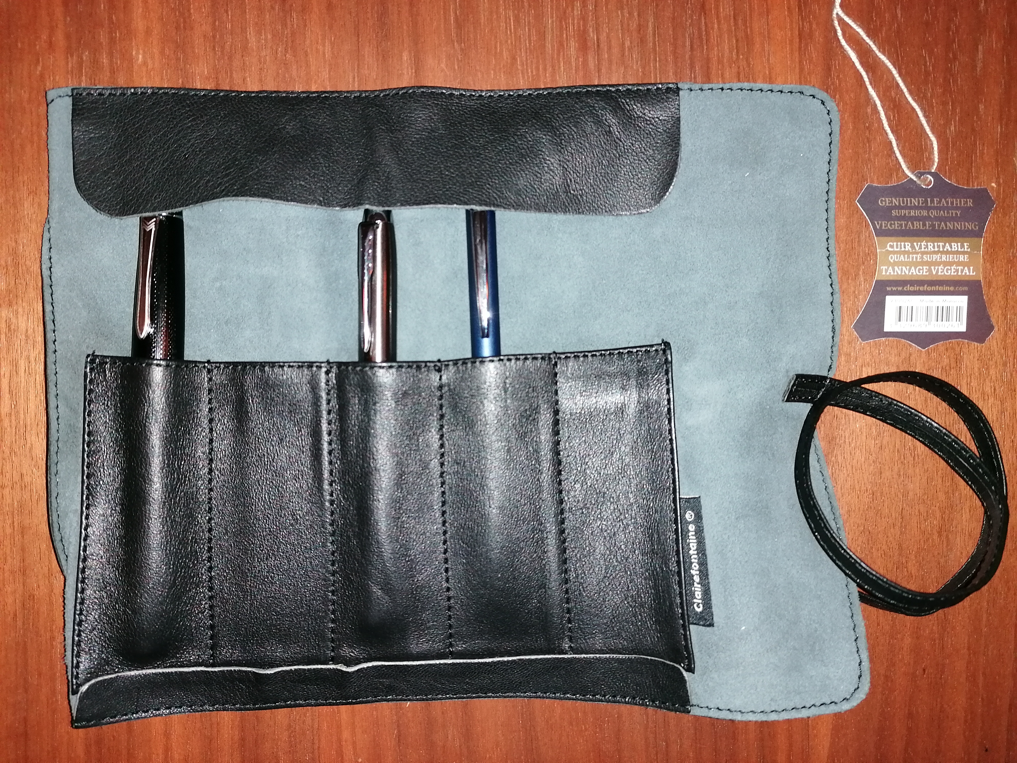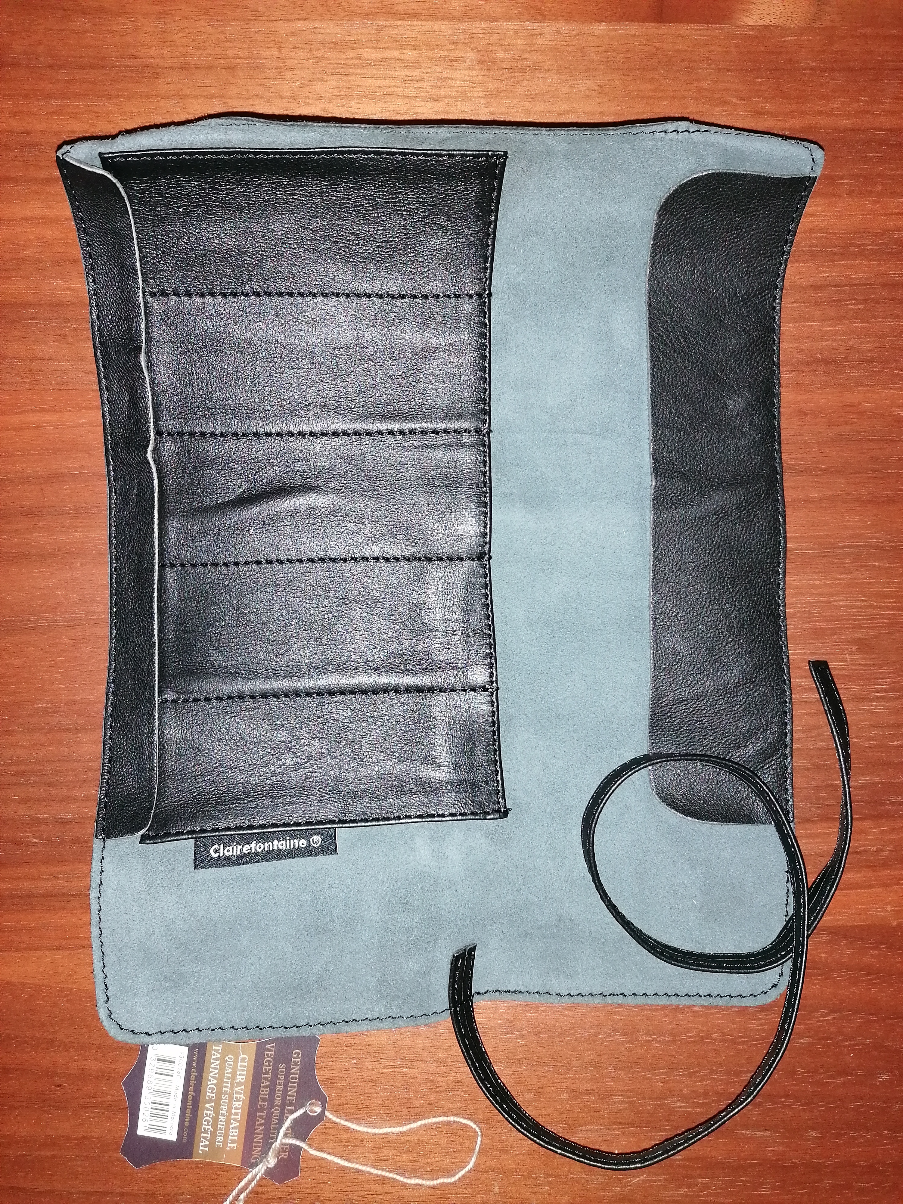 L'astuccio in questione è prodotto da Clairefontaine (collezione Flying Spirit), il materiale con cui viene realizzato è pelle di agnello, la sua colorazione è il nero (ma è disponibile anche in altre nuances).
