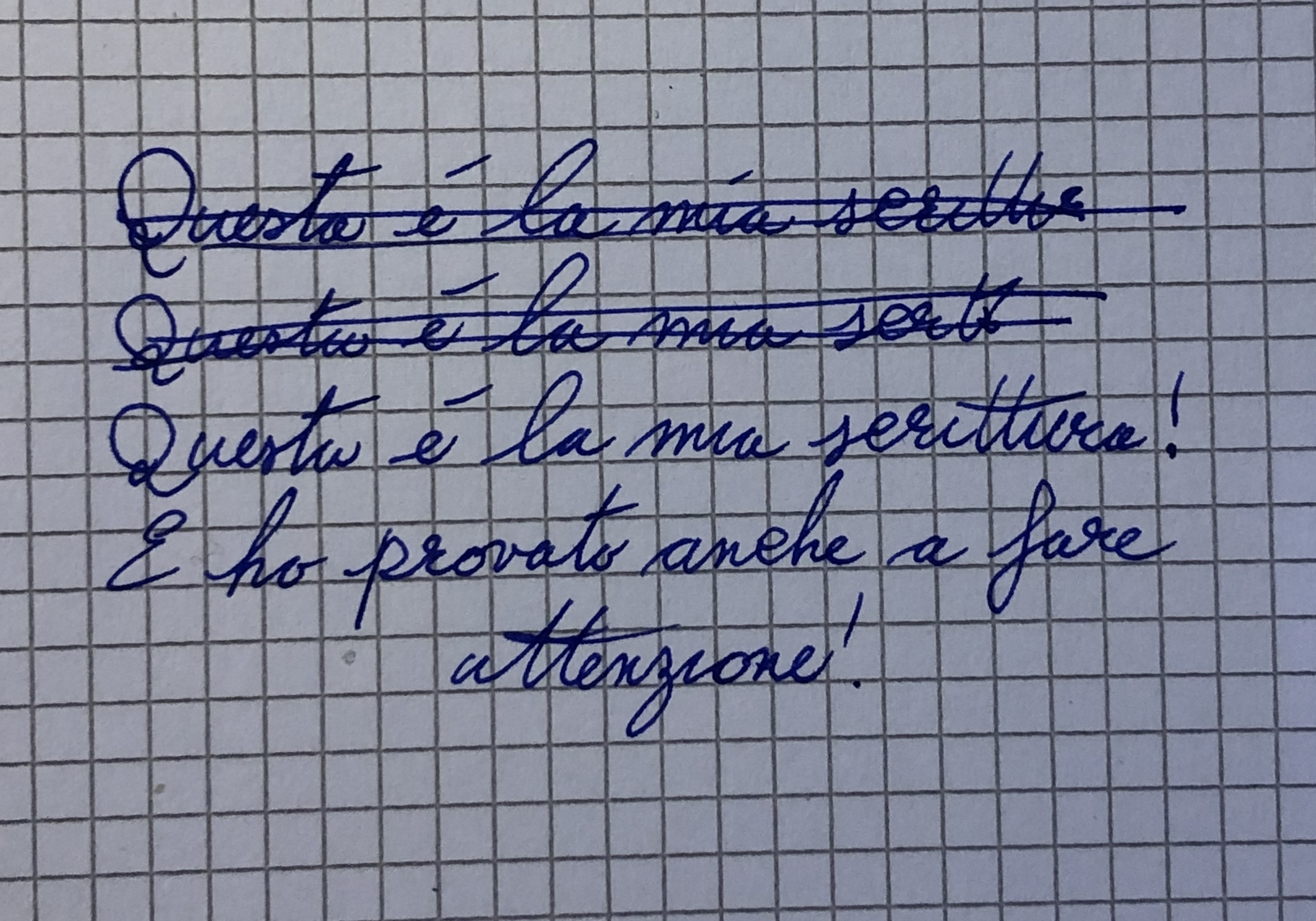Automedonte ha scritto: lunedì 18 gennaio 2021, 9:31 Quello che lamentava Tribbo, che poi è anche il mio problema, penso sia il fatto di avere una scrittura poco leggibile che è peggio di una semplice scrittura non "bella" esteticamente.