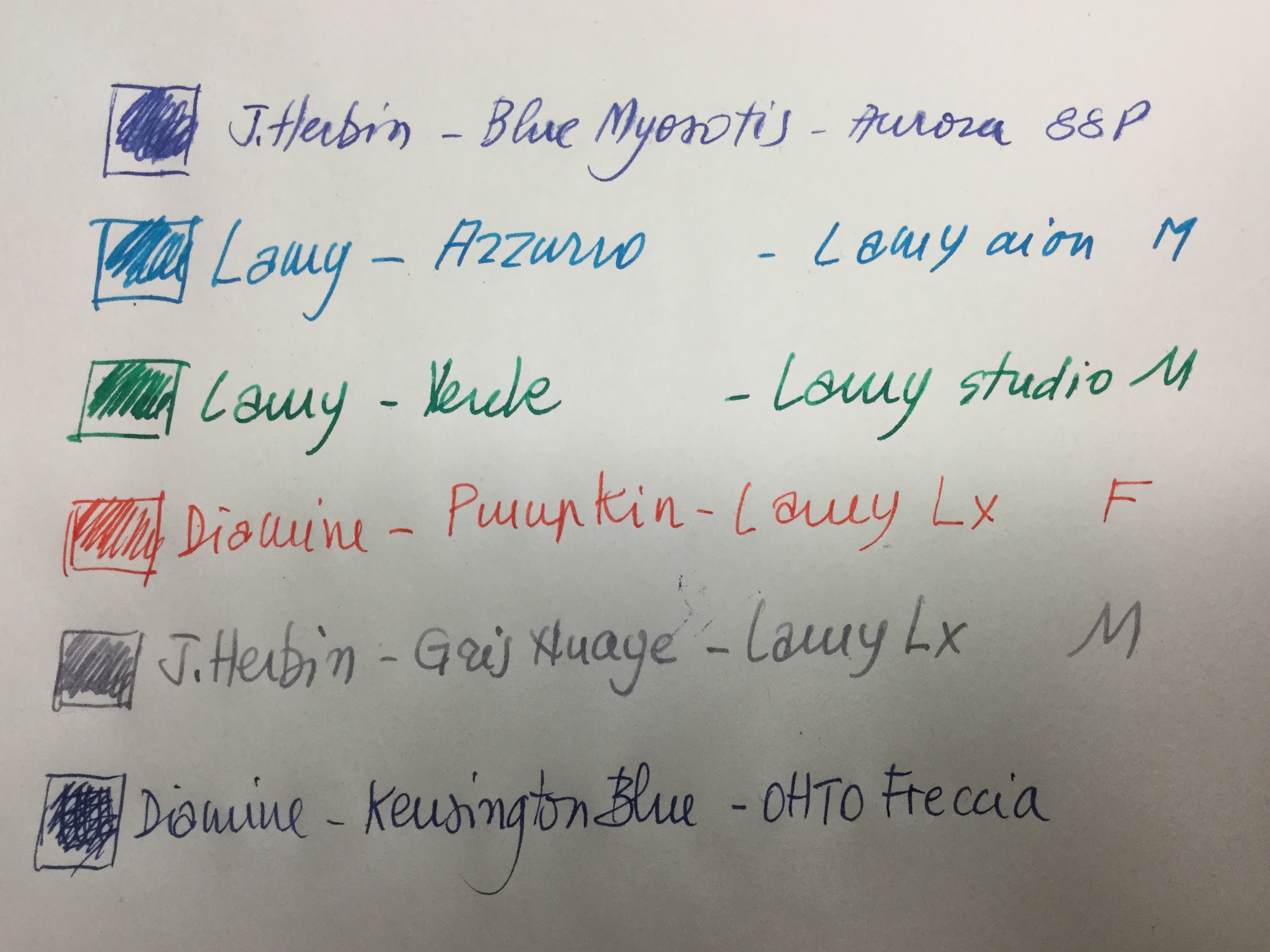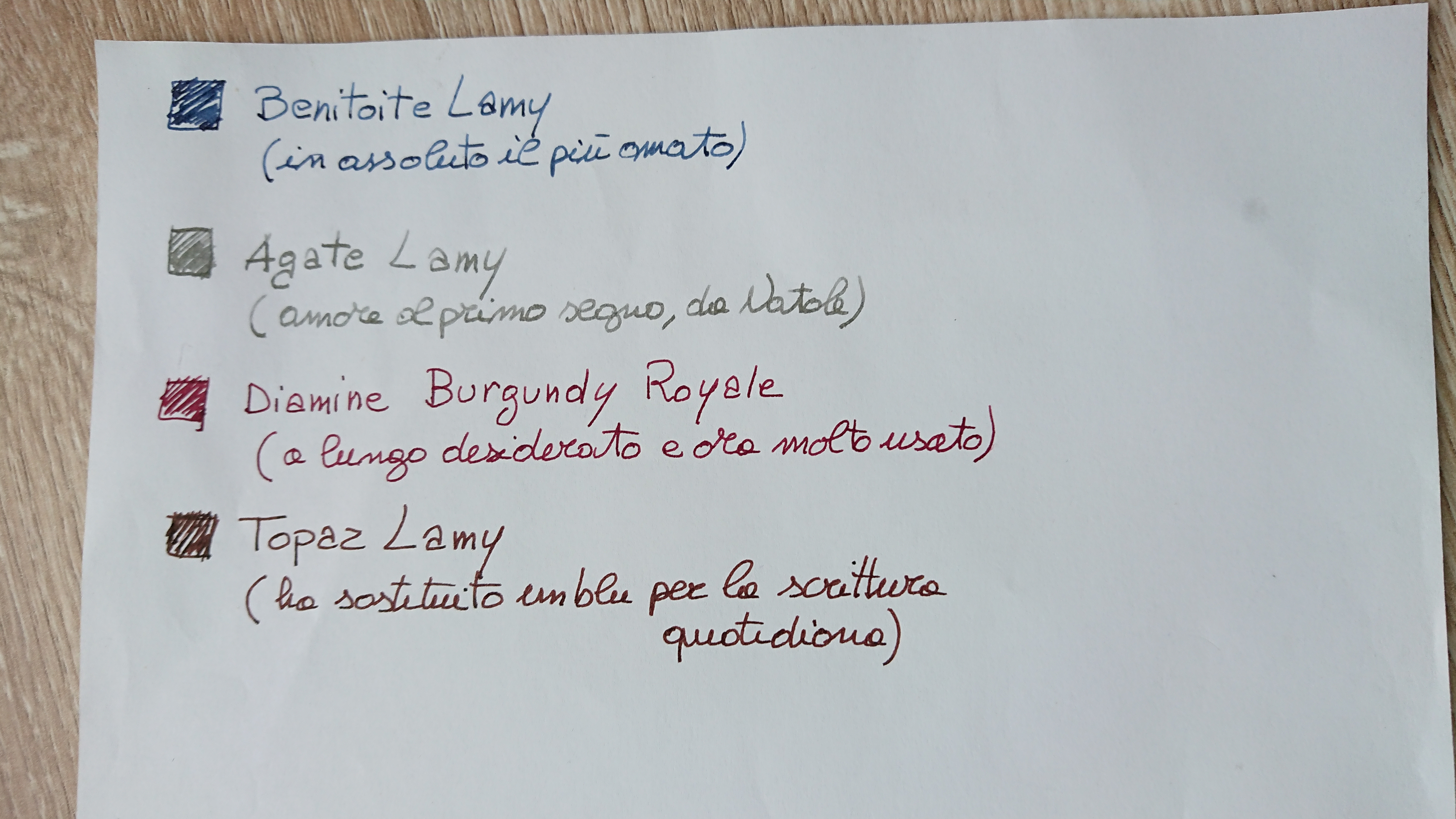 La Lamy prima era caricata con Herbin Poussière de lune - viola - che mi piace come colore ma mi pare vada poco d'accordo con quella penna...