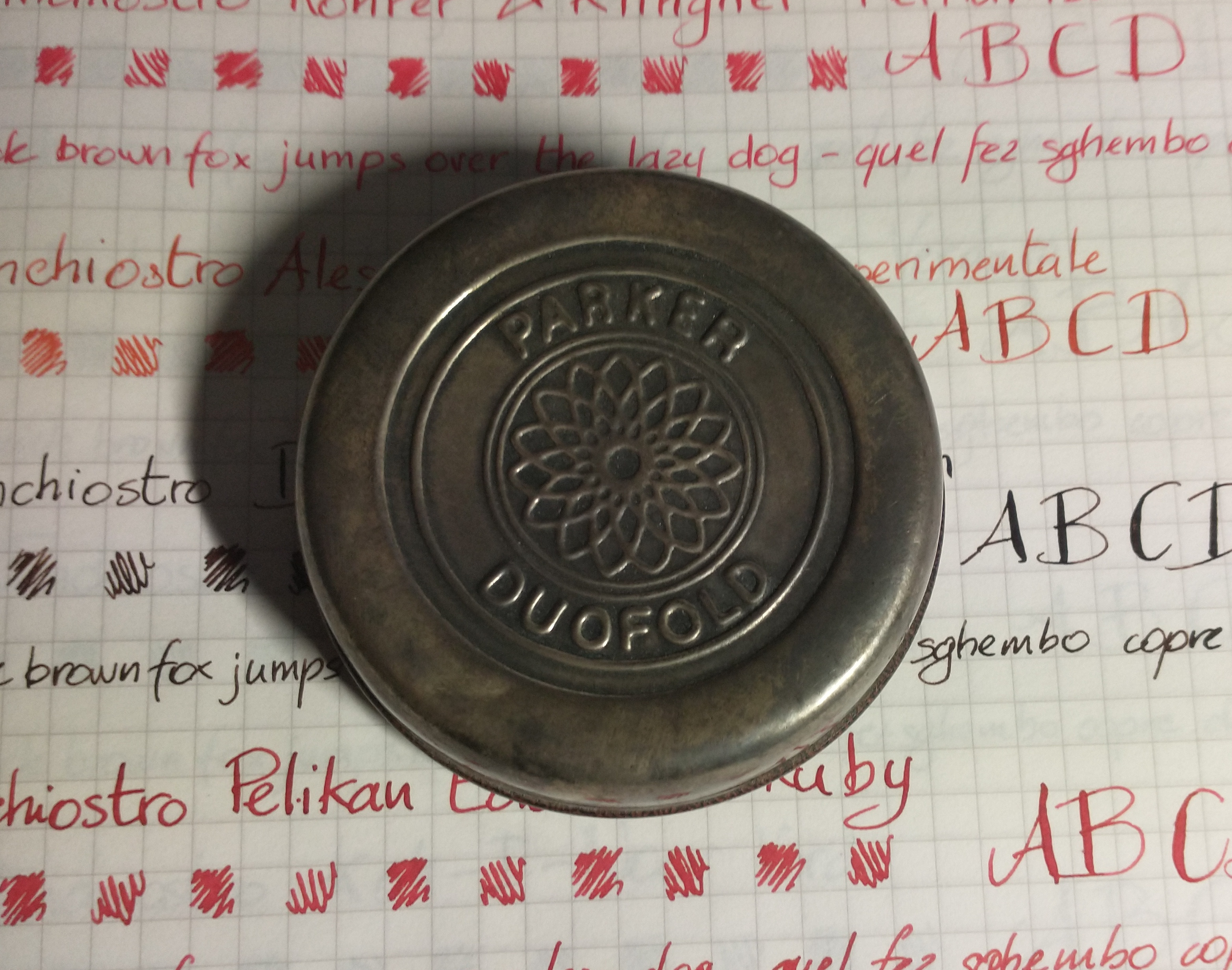 Ho cercato di trovare se e quando Parker abbia utilizzato storicamente il disegno del pendulum come uno dei suoi simboli prima di impieagrlo sul medaglione della Duofold Centennial nel 1990, ma sinora non ho trovato nessuna informazione utile.