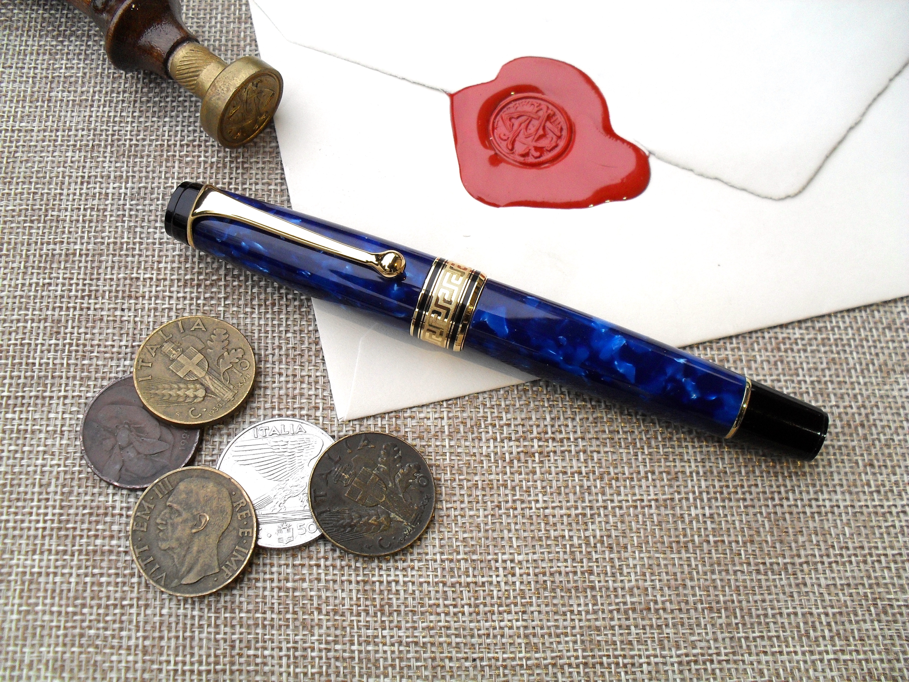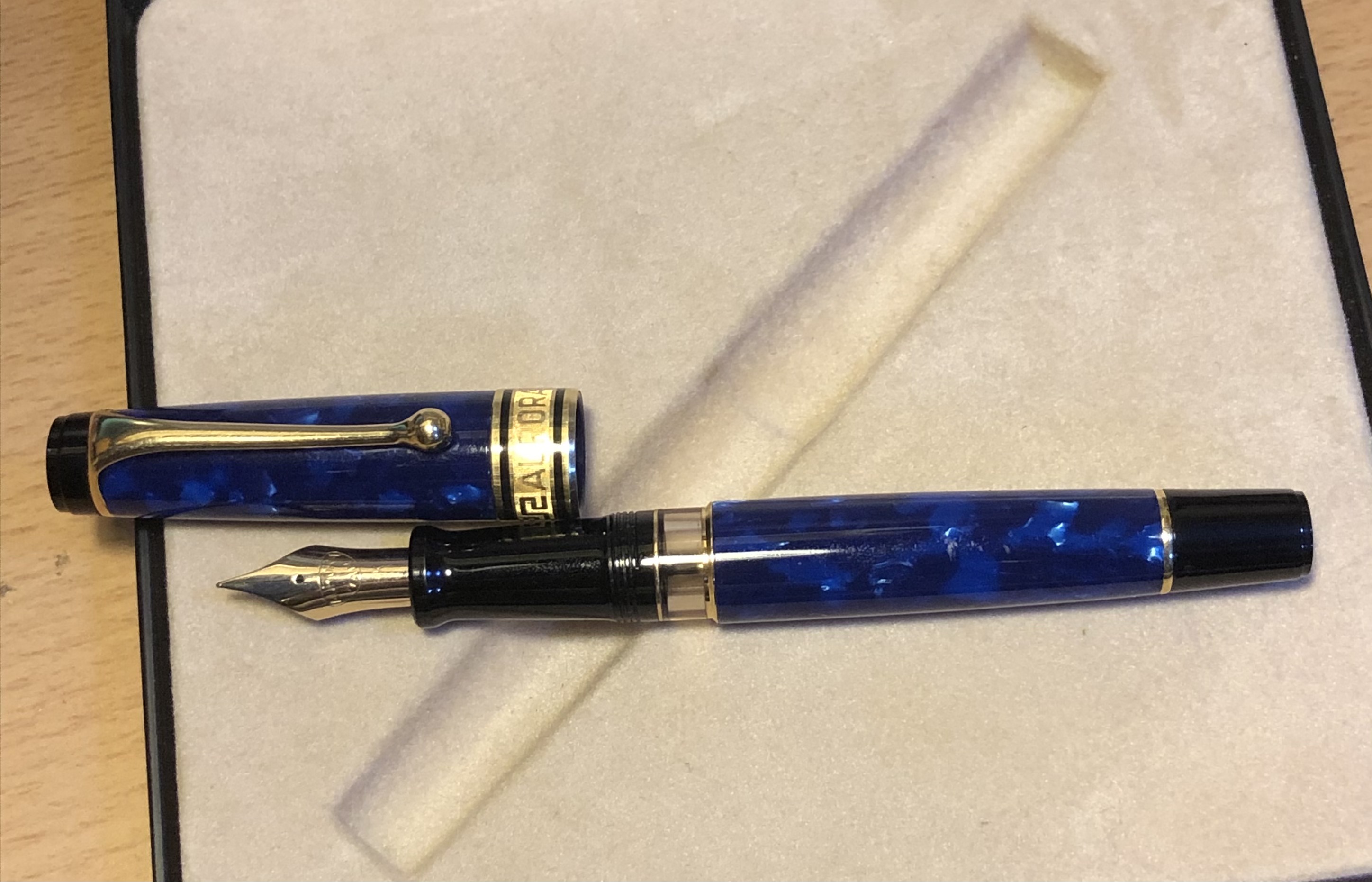 Finalmente sono riuscito a prendere una bella Aurora Optima blu della prima serie, quella con la greca e le due vere sul cappuccio
