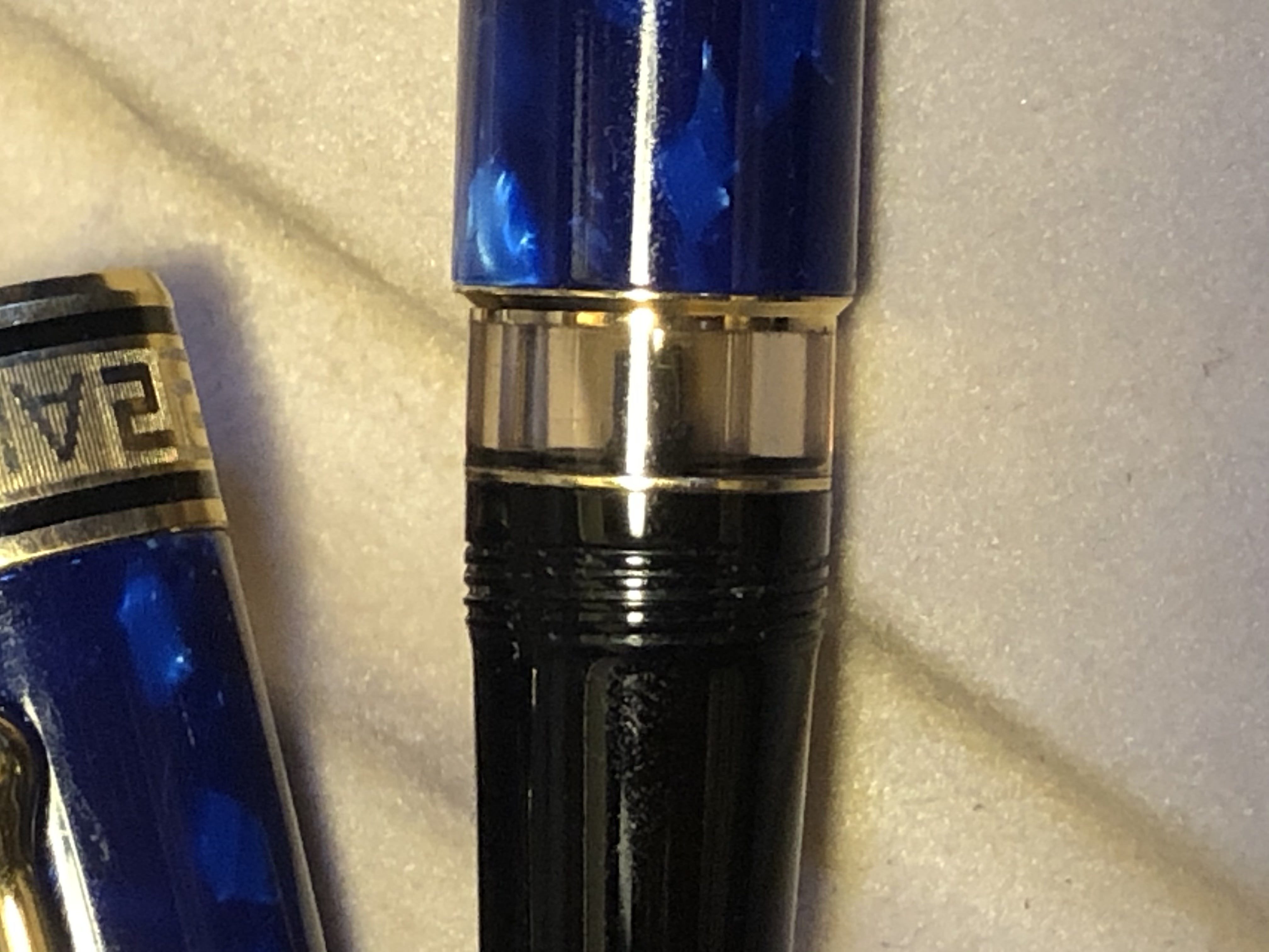 Molto si è discusso su questa penna a causa della sua Auroloide che tendeva a ritirarsi. A me pare proprio che quella che ho preso non abbia questo problema, sia vicino alla sezione che con le vere del cappuccio che a mio avviso si presentano ben salde