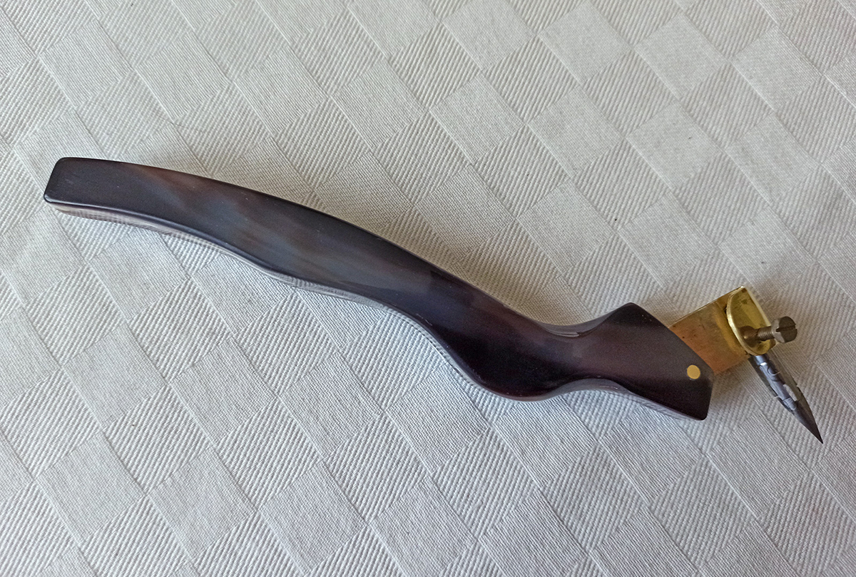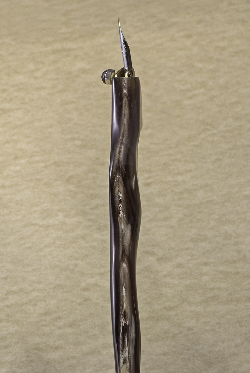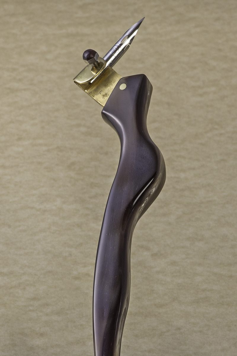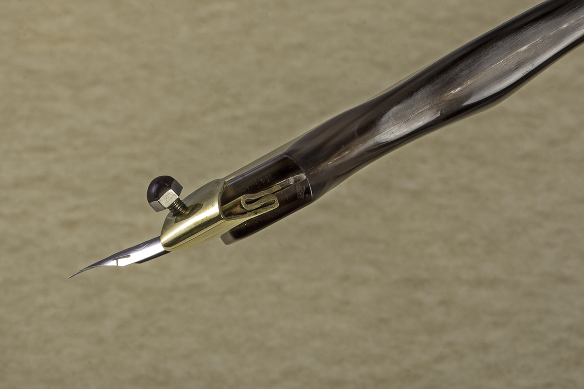 Il porta pennino è ricavato da una lastrina di ottone di un 1mm di spessore, piegato e ripiegato con ricottura dell’ottone; sulla testa della vite
