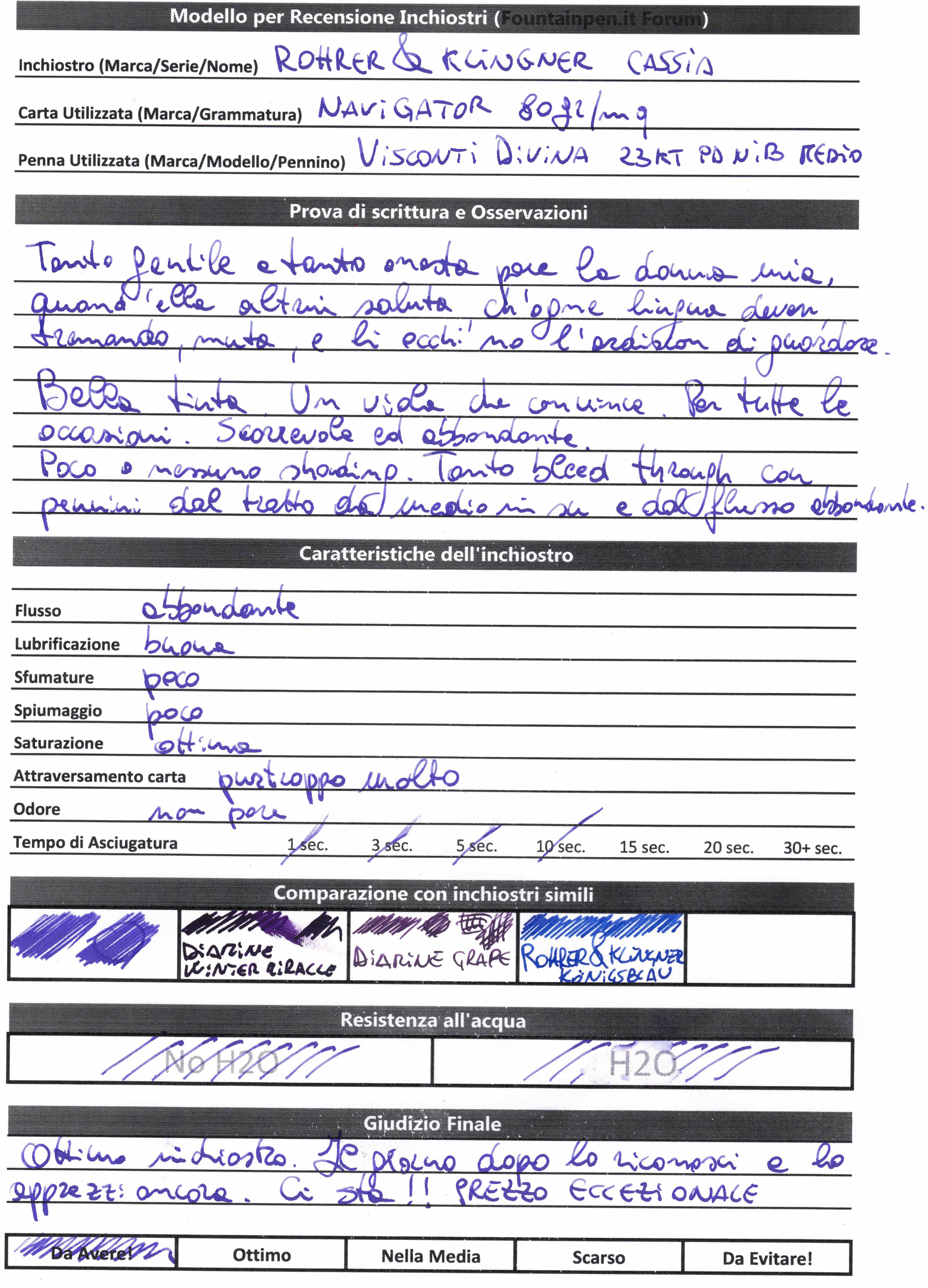 Sperando che a qualcuno possa essere utile, pubblico la recensione del Cassia di Rohrer & Klingner.