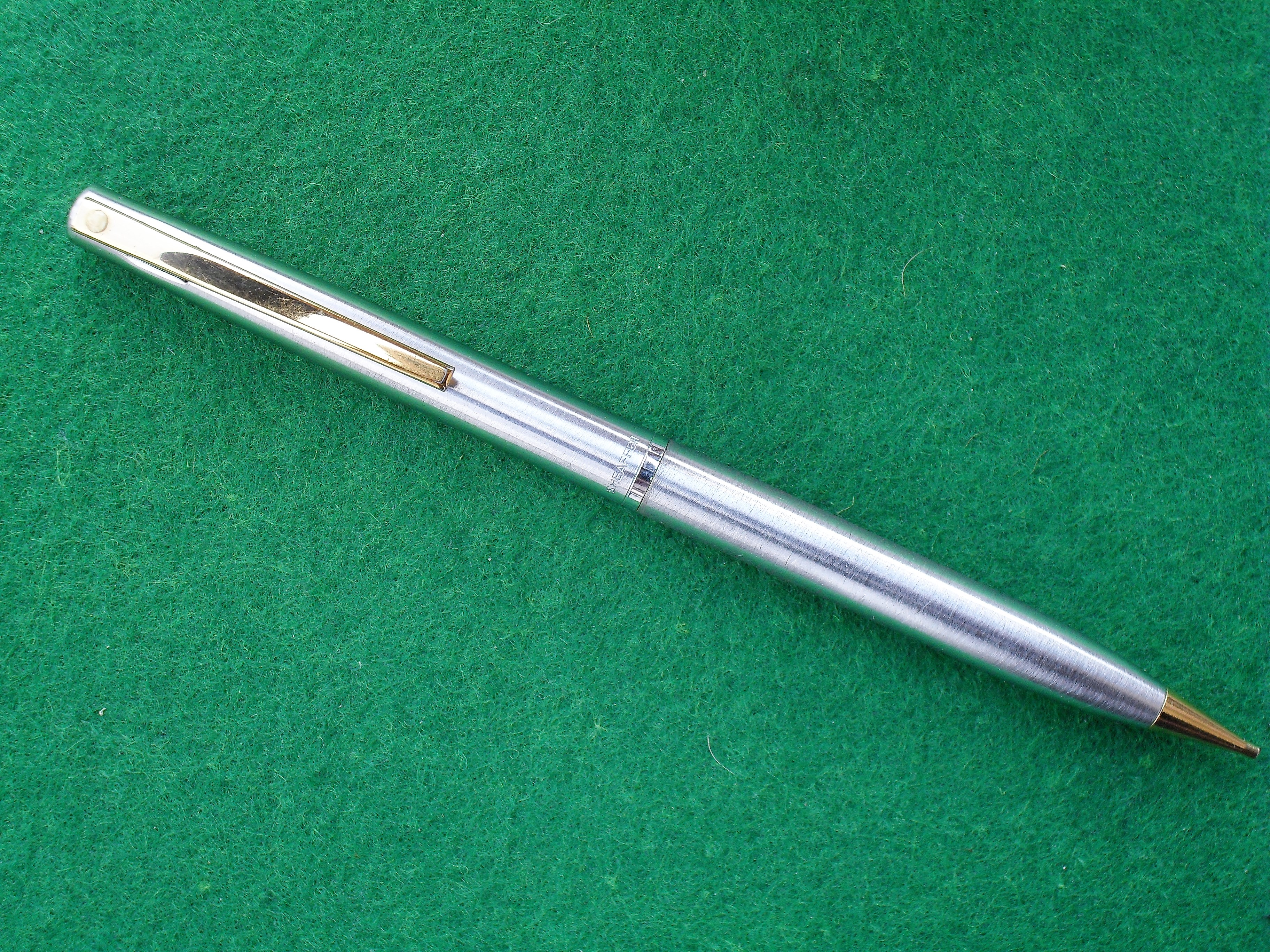 Dopo le stilo mi appassionano anche i portamine perché li utilizzavo molto quando si disegnava a mano. Tuttora li uso per appunti o fare schizzi, attualmente uso i Faber Castel con mina da 1,20. Questo della Sheaffer è molto bello con quella clip particolare, poi le mine da 0,9 sono facili da reperire.
