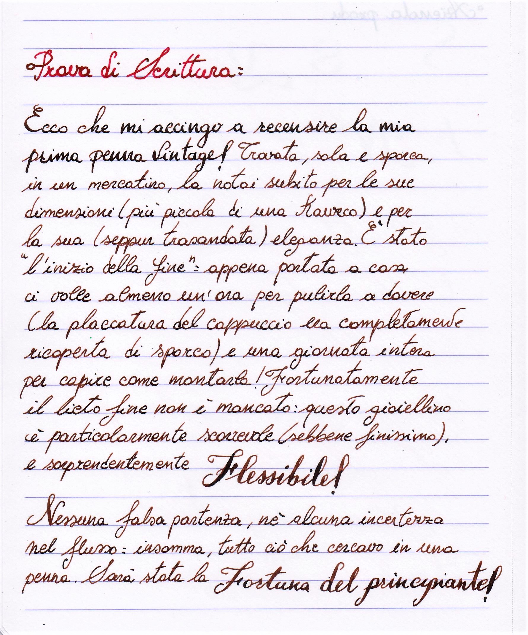 Complimenti, una bella recensione per una penna deliziosa, e quel pennino mi pare proprio si comporti molto bene.