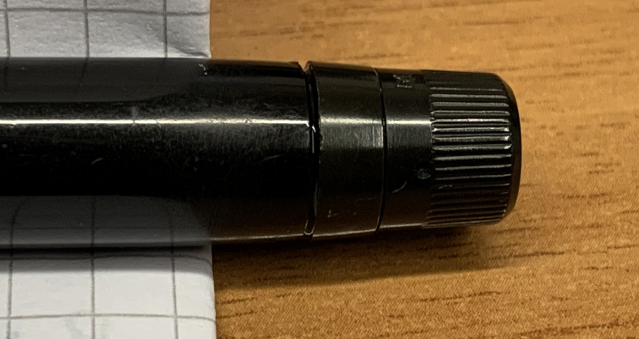 Purtroppo la parte messa peggio è quella filettata che si avvita alla sezione, avvitando il fusto si aprono continuamente delle crepe e si staccano dei pezzettini di filettatura, in pratica si sbriciola e non tiene più facendo trafilare inchiostro da ogni dove.