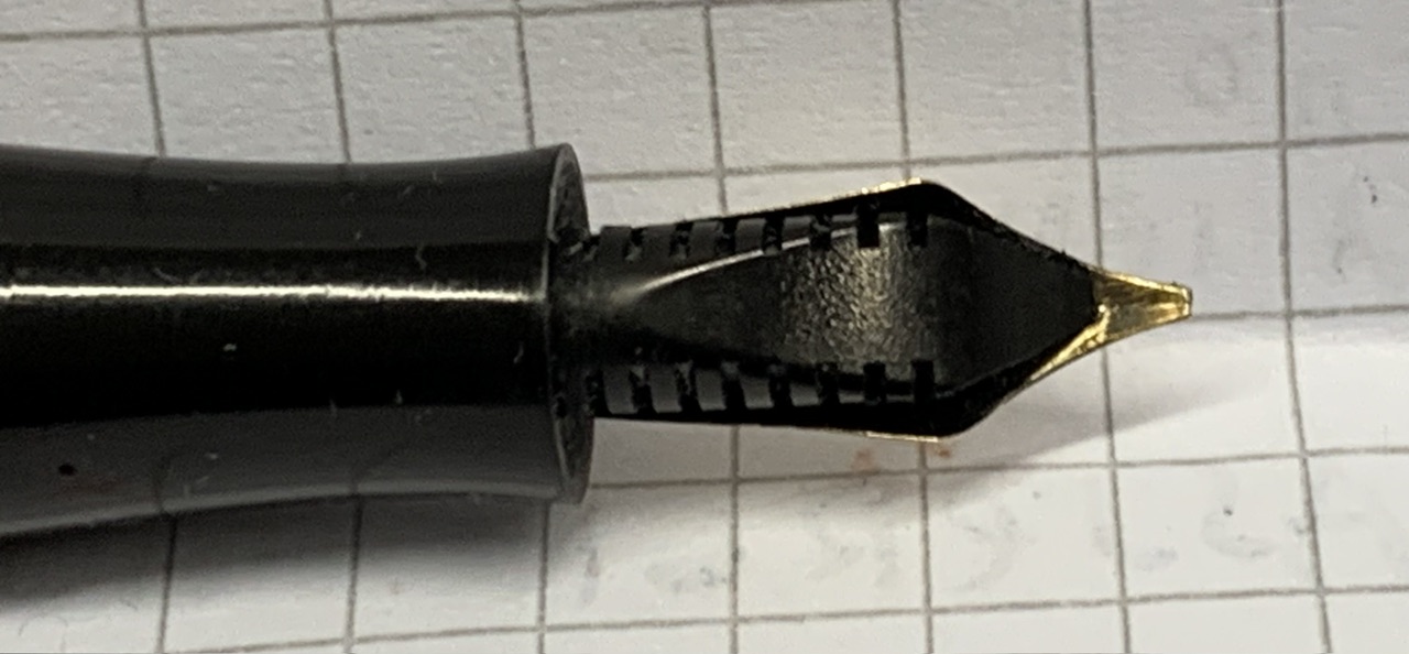 Il pennino non ha indicazioni della gradazione, sul fondello c'è impresso "M", ma la punta mi sembra troncata e rifinita come un italico, è possibile che il proprietario se la sia fatta personalizzare o uscivano di fabbrica già cosí?