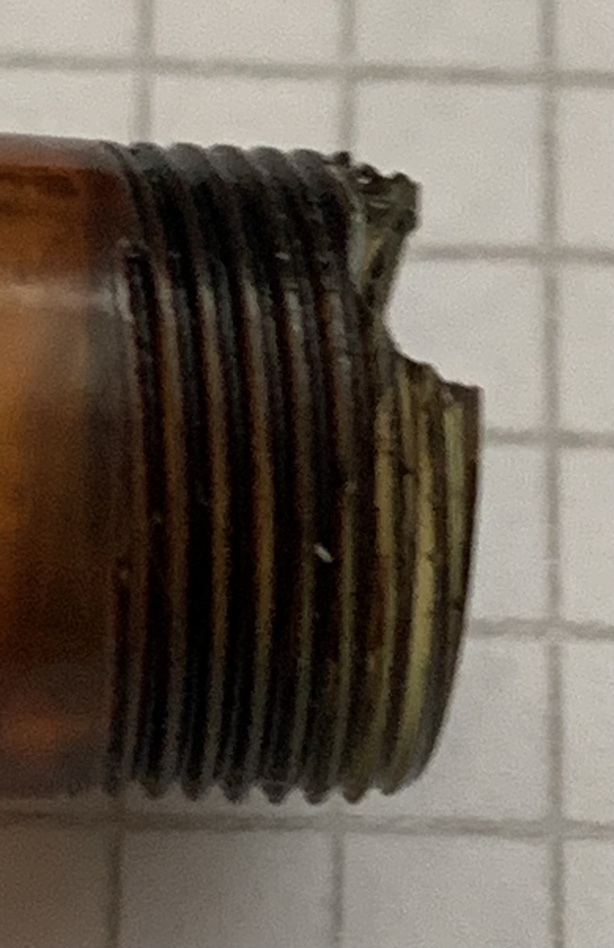 Purtroppo dalla parte anteriore, che si è svitata abbastanza facilmente su è staccato un piccolo pezzo di filettatura che si è sbriciolato.