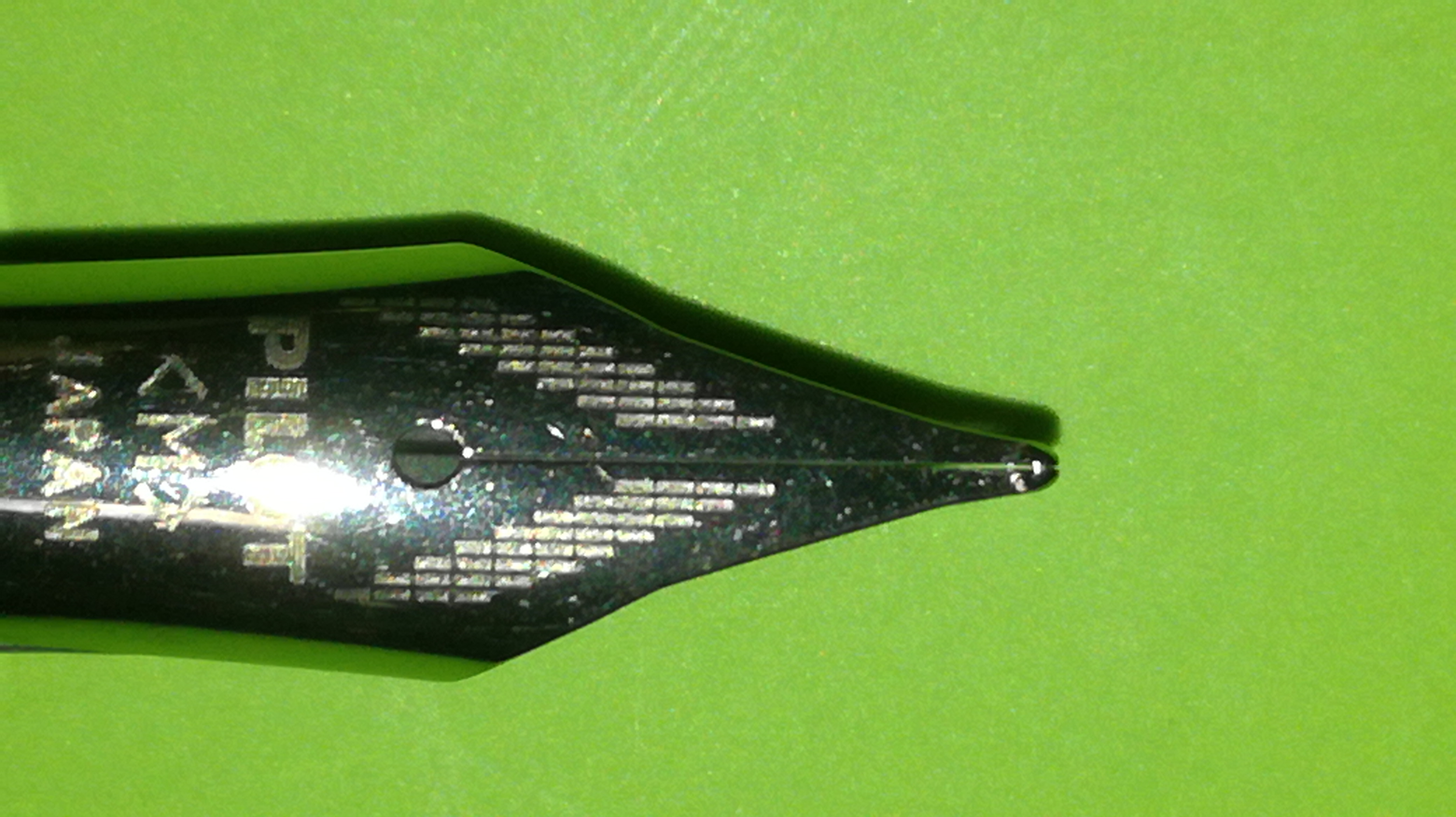 In quanto ai rebbi, è difficile avere perfetta simmetria, perché l'impostazione di scrittura di ognuno modifica quella che sarebbe la geometria ideale. Nella prima foto li vedo comunque troppo larghi, e questo sarebbe un primo problema da risolvere. Nella seconda, se tu usi la penna ruotata in un certo modo, quella geometria ci sta tutta; ad esempio, i pennini delle stilografiche della mia compagna sono tutti così, perché lei scrive con la penna leggermente ruotata. Hai fatto interventi sulla MR, volti ad aprire i rebbi? Perché se l'hai fatto, magari esagerando, il problema è quello. Non capisco bene, ma mi sembra che lo spazio inferiore tra le due porzioni di iridio sia anche più largo di quello superiore, il che potrebbe produrre false partenze, a causa delle parti esterne dei rebbi estroflesse verso l'alto.