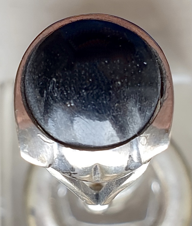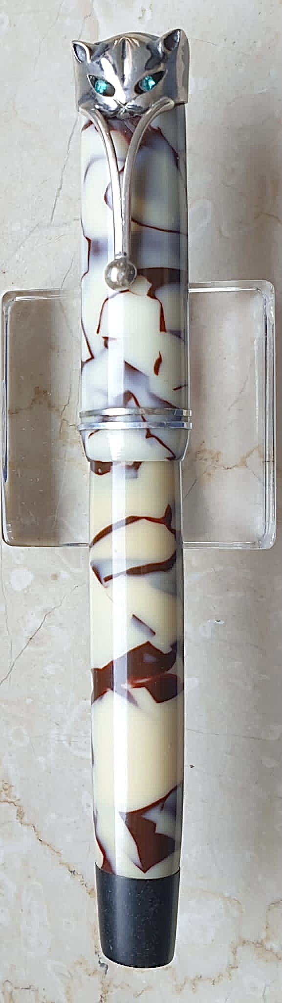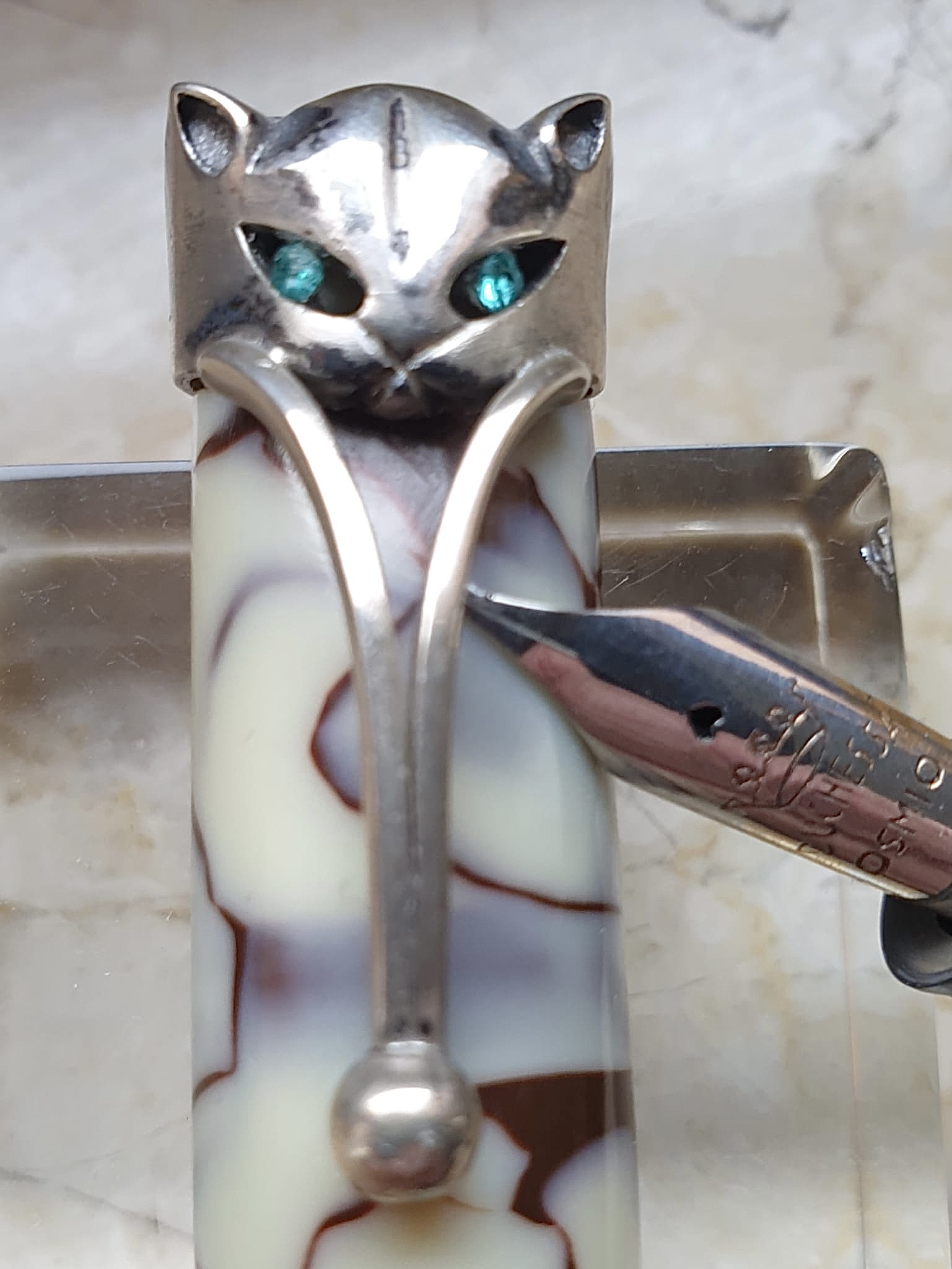 E' fissato alla testina nera di ebanite sagomata sulla forma della parte argentea.