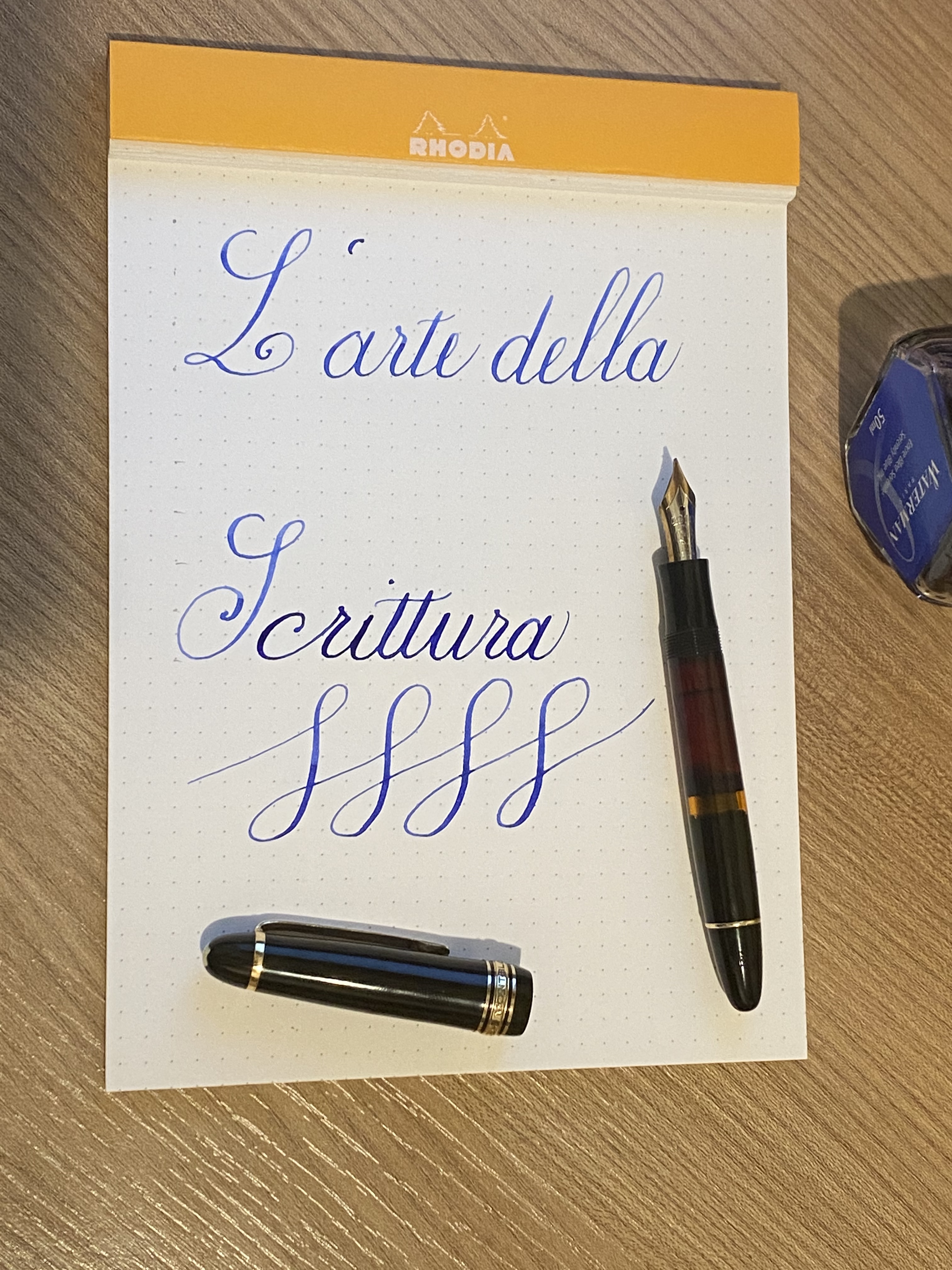 La Wahl citata sopra sembra essere disegnata intorno a quel pennino, la mano non fa alcuno sforzo nel guidare la penna tra pressioni e rilasci , è come una nave naturalmente portata su e giù dalle onde.