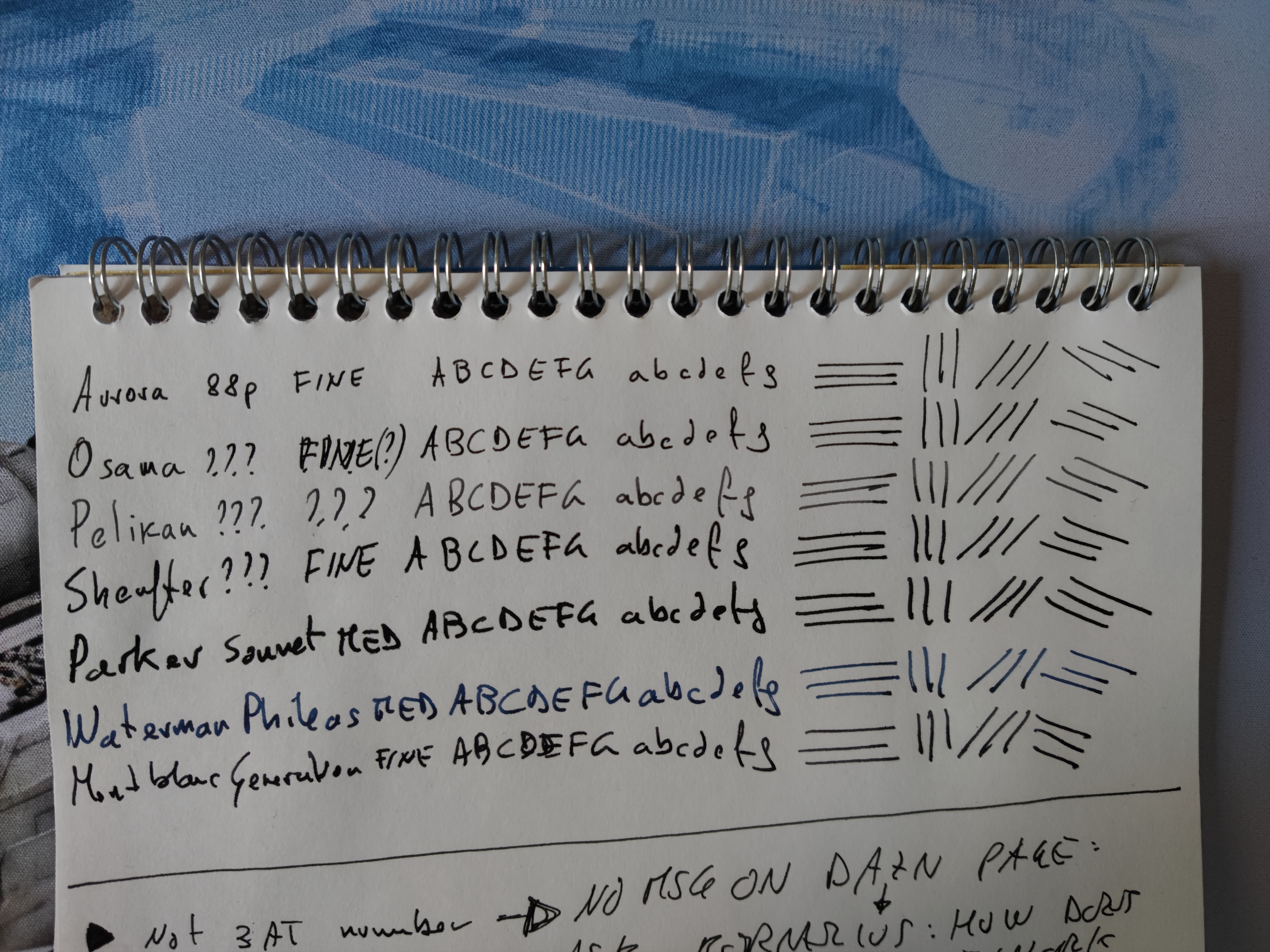 Sotto la comparazione con altre penne che ho trovato ieri (tranne la Aurora 88P che uso da anni e rimane la mia preferitaccome tratto)