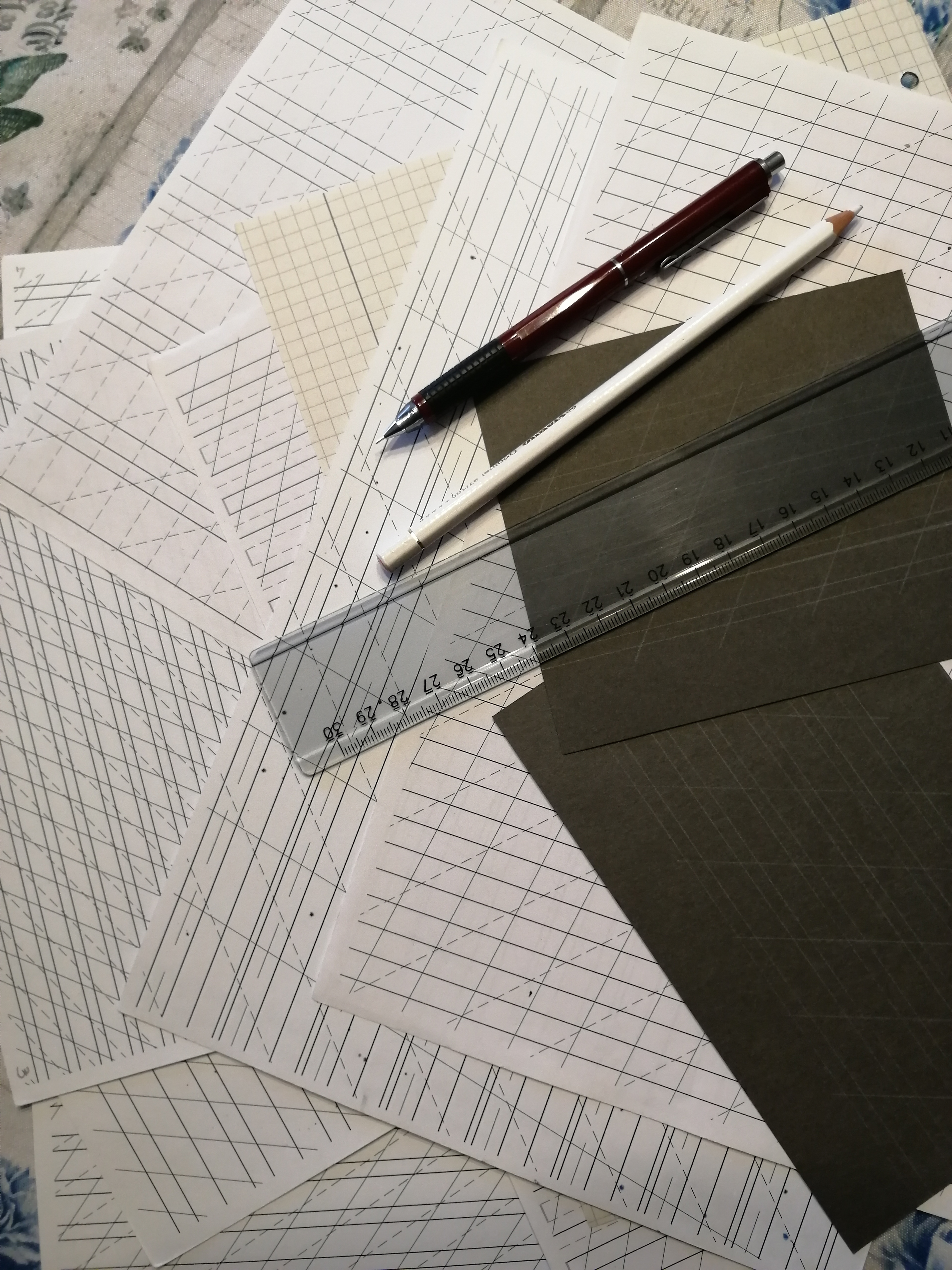 Io non ne faccio praticamente mai a meno (guardando video di vari calligrafi anche loro le usano quindi non me ne vergogno) e ho una collezione imponente di fogli stampati per i vari stili e altezze di corpo lettera, altrimenti in caso di necessità ne faccio a mano o le traccio direttamente sul foglio da utilizzare, soprattutto in caso di cartoncini troppo spessi o fogli colorati.