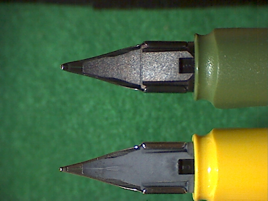 Tornando al discorso della scorrevolezza penso che il trattamento venga fatto al pennino completo di pallina come si vede in queste immagini. la tonalità del pennino e della pallina mi sembrano uguali. Il rivestimento potrebbe modificare la scorrevolezza della pallina di iridio.