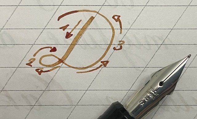 La penna è un anonima con carica a pulsante e pennino flex in acciaio, il flusso è piuttosto abbondante quindi per farla scrivere fine bisogna stare molto leggeri, ma la variazione di tratto è notevole, forse un pó lento il ritorno ma comunque molto scorrevole e piacevole da usare.
