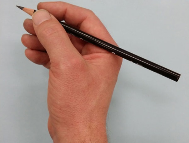Io impugno in modo tradizionale, ma il mio indice è spostato leggermente sul davanti, in direzione del pollice che resta effettivamente al lato sinistro. Il medio resta dietro a creare una sorta di triangolo molto regolare. Impugnando in quel modo riesco ad avere, volendo, una mano estremamente leggera, un'abitudine che viene dal modo di impugnare la matita per ottenere determinati risultati.