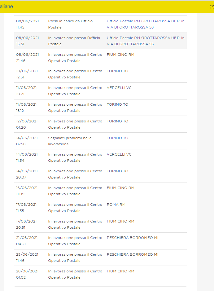 In effetti non è che funzioni molto bene, recentemente aspettavo una penna da Torino che non è mai arrivata. Per dieci giorni il tracciamento la indicava come presa in carico e poi è sparita.