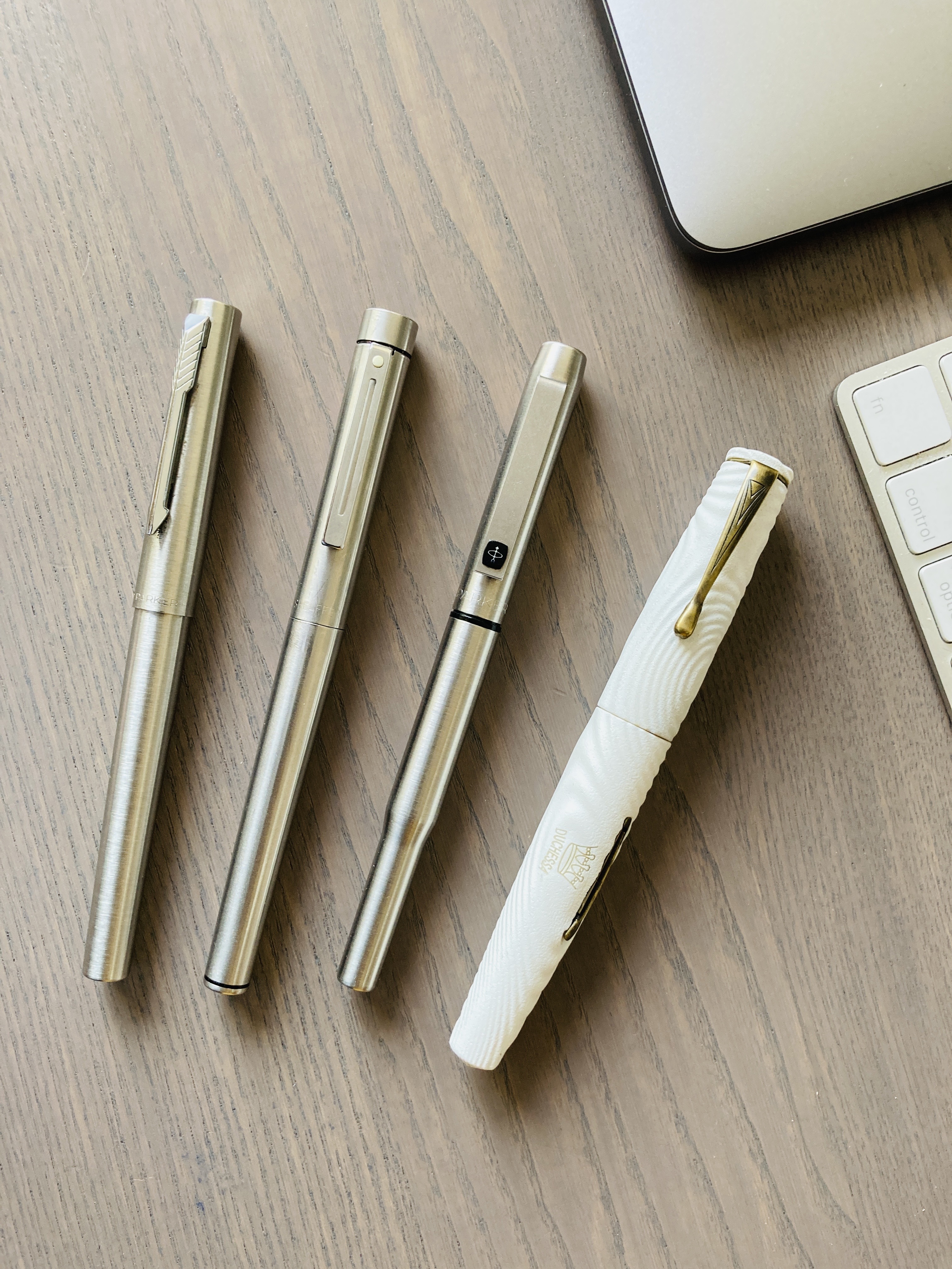 4 penne inchiostrate al momento, una rarità. Di solito cerco di averne solo due, max 3.