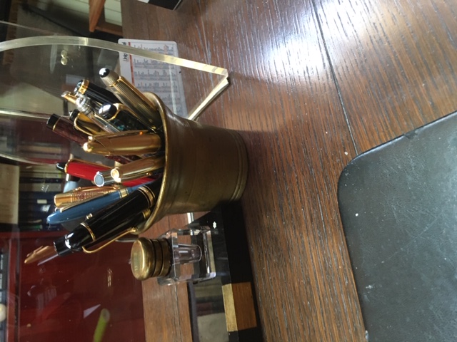 Ecco una panoramica delle penne inchiostrate e, da parte, quelle di maggior uso: Delta Dolce Vita Medium Size Piston, Aurora AfriKa, Aurora Optima in auroloide verde, Parker Duofold Centennial Red Marbre, Aurora 88 big rebbi lunghi, Waterman Edson.