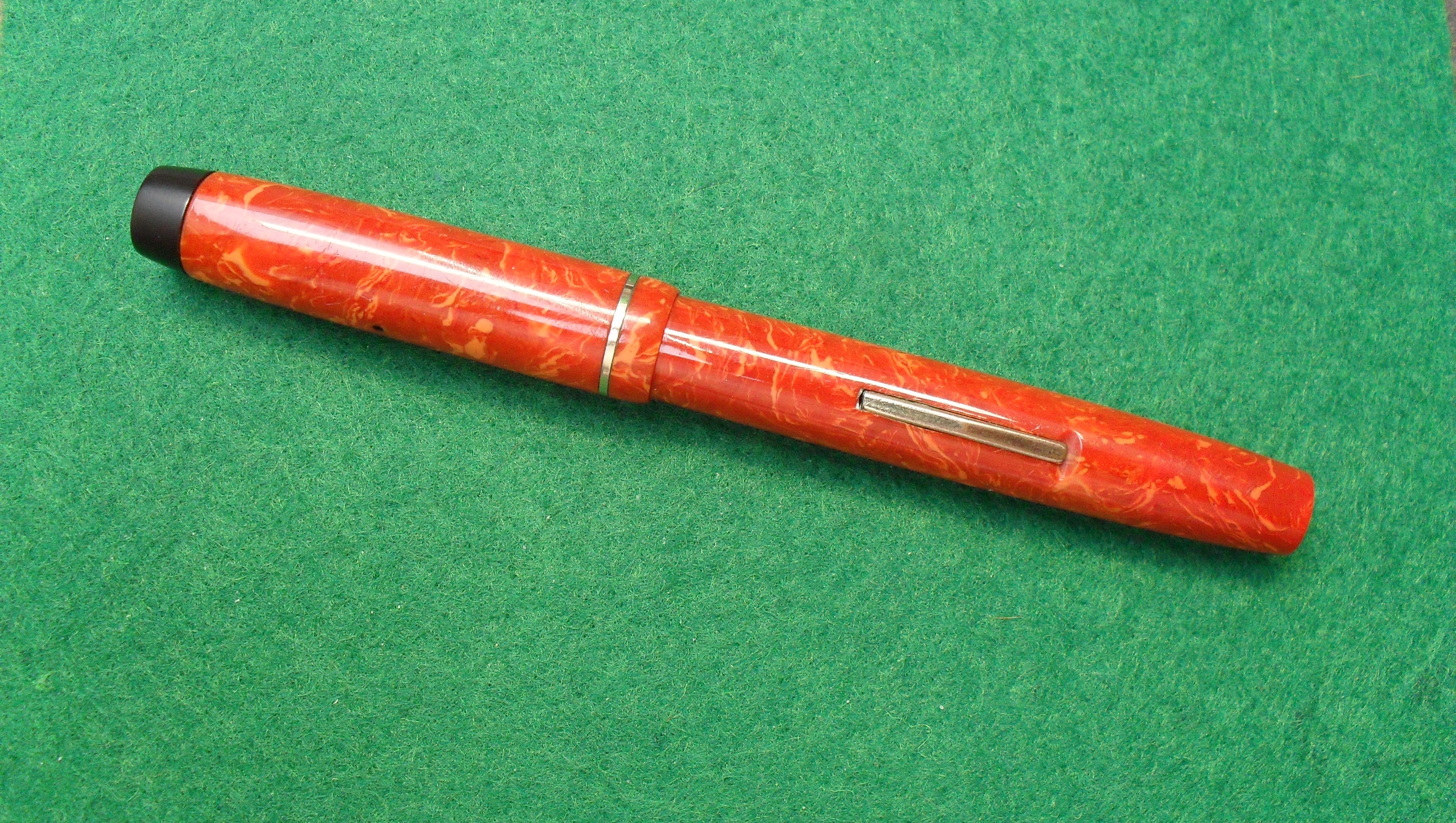 6 DIAMOND - J 5725 POINT FILL - E - Z ORANGE LEVER FILLER - 1930 USA - CELLULOIDE