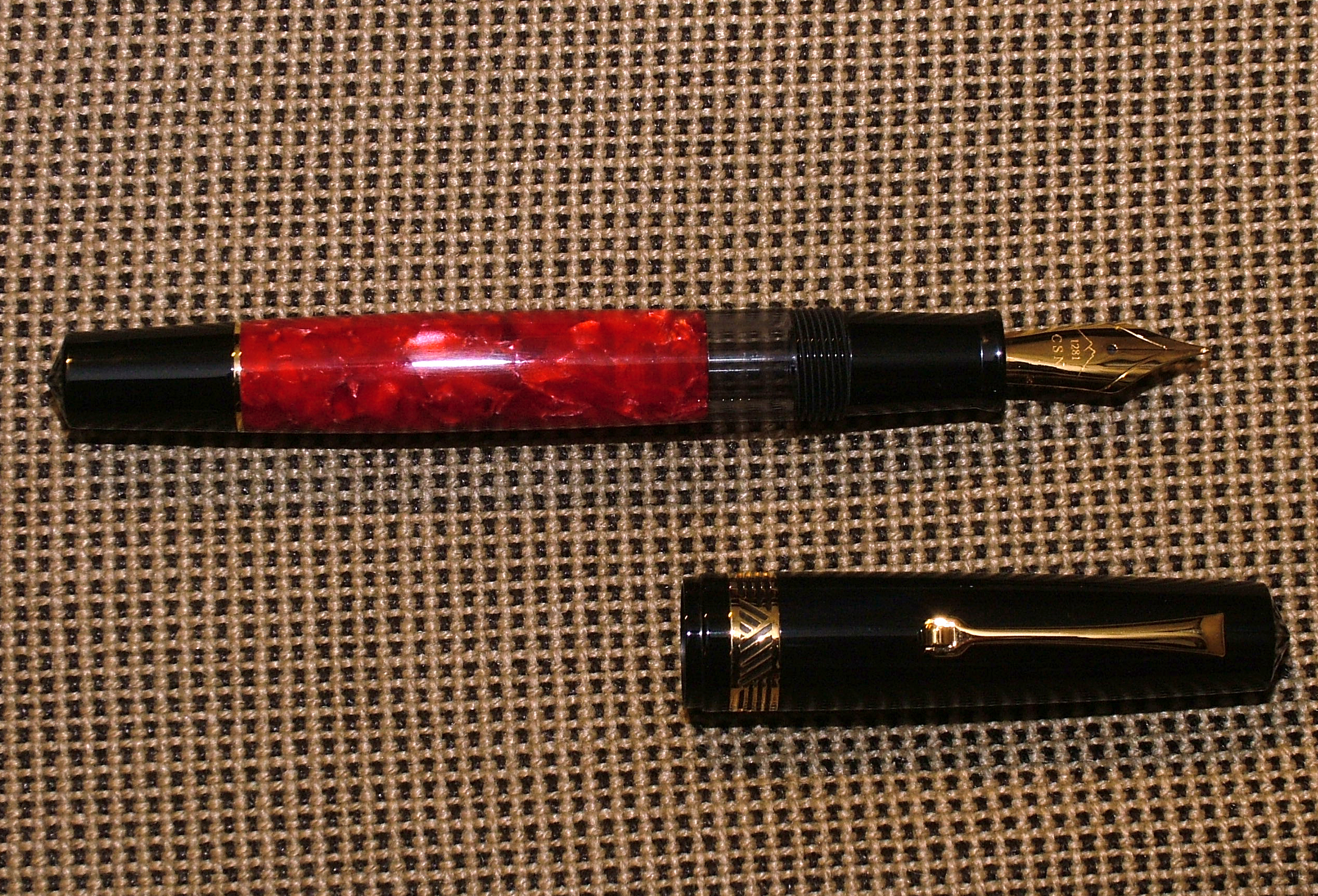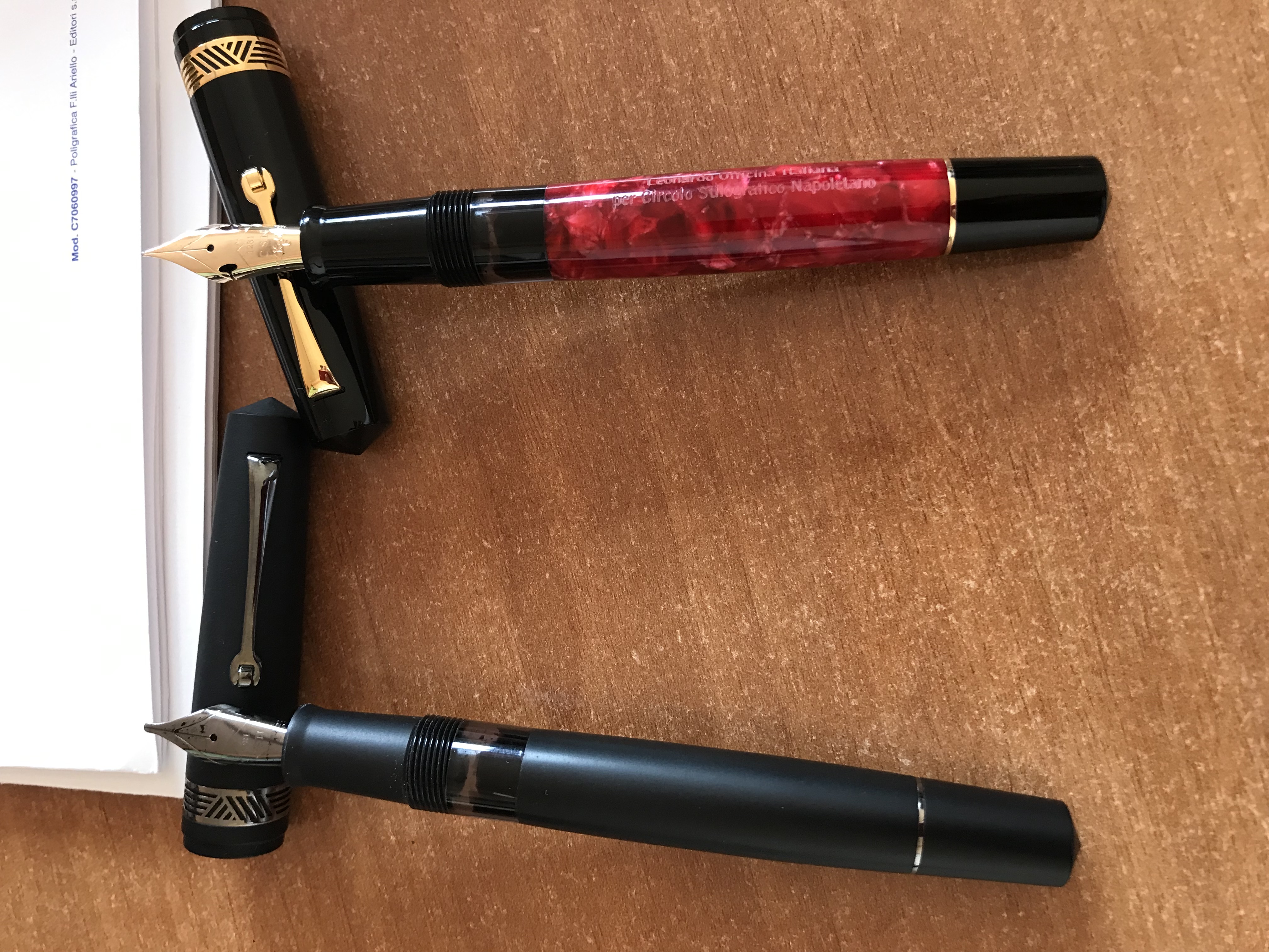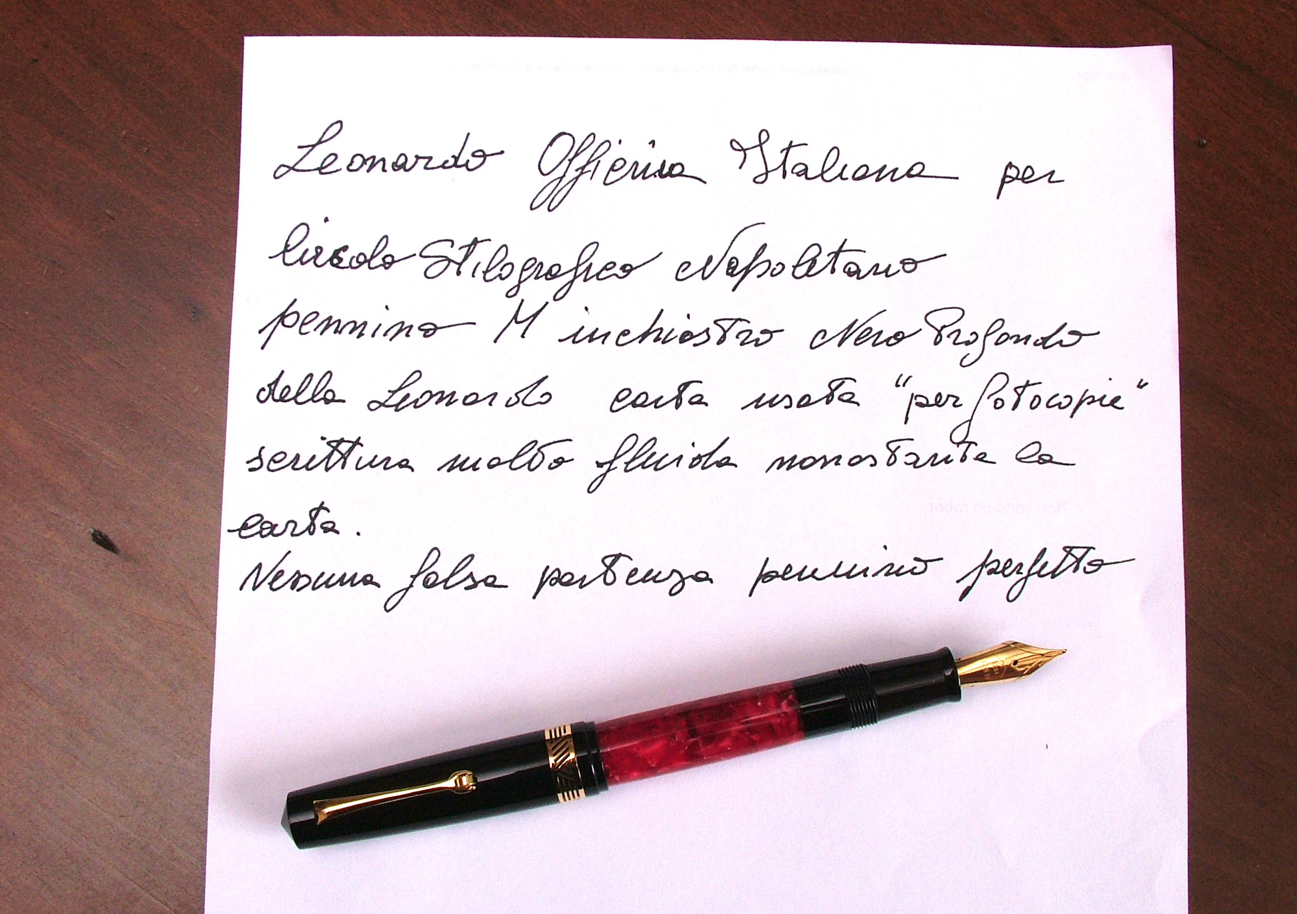 Che dire felicissimo di questa penna che già conoscevo avendone presa una ancor prima che uscisse sul mercato, ma questa mi ha colpito in modo particolare per la colorazione, l'accoppiamento del nero col rosso marmorizzato, che dire mi ha incantato.
