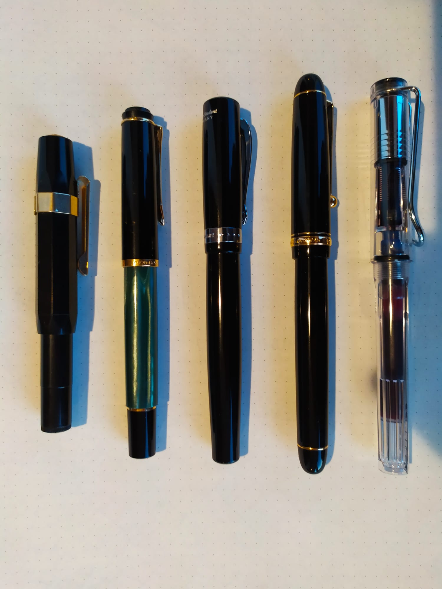 Da sx a dx: Kaweco Sport - Pelikan M200 - Kaweco Student - Pilot Custom 74 - Lamy Safari