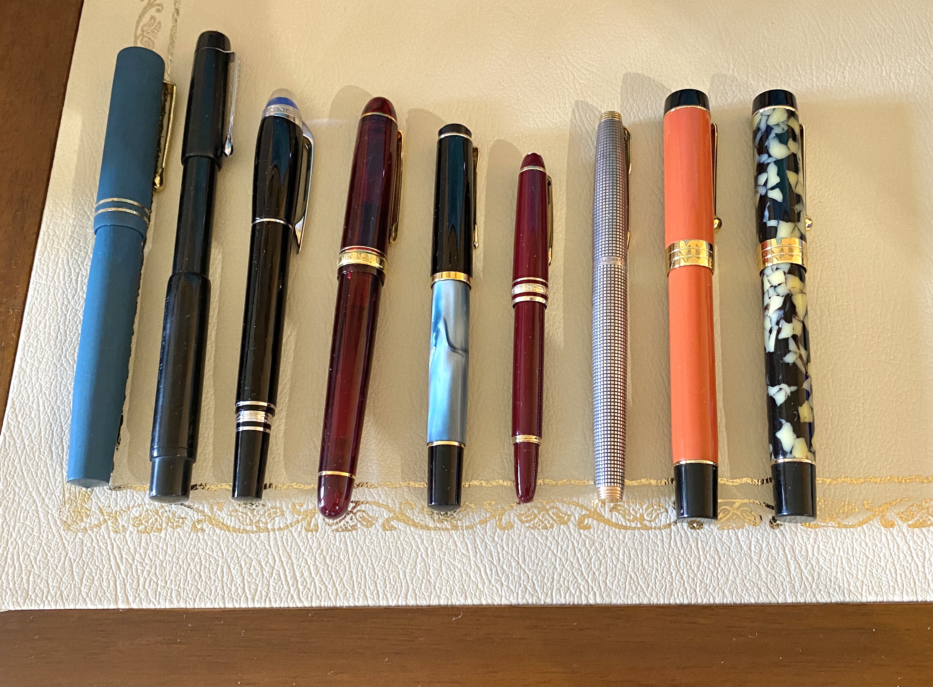 Le mie eterogenee penne cariche al momento, dall'alto: