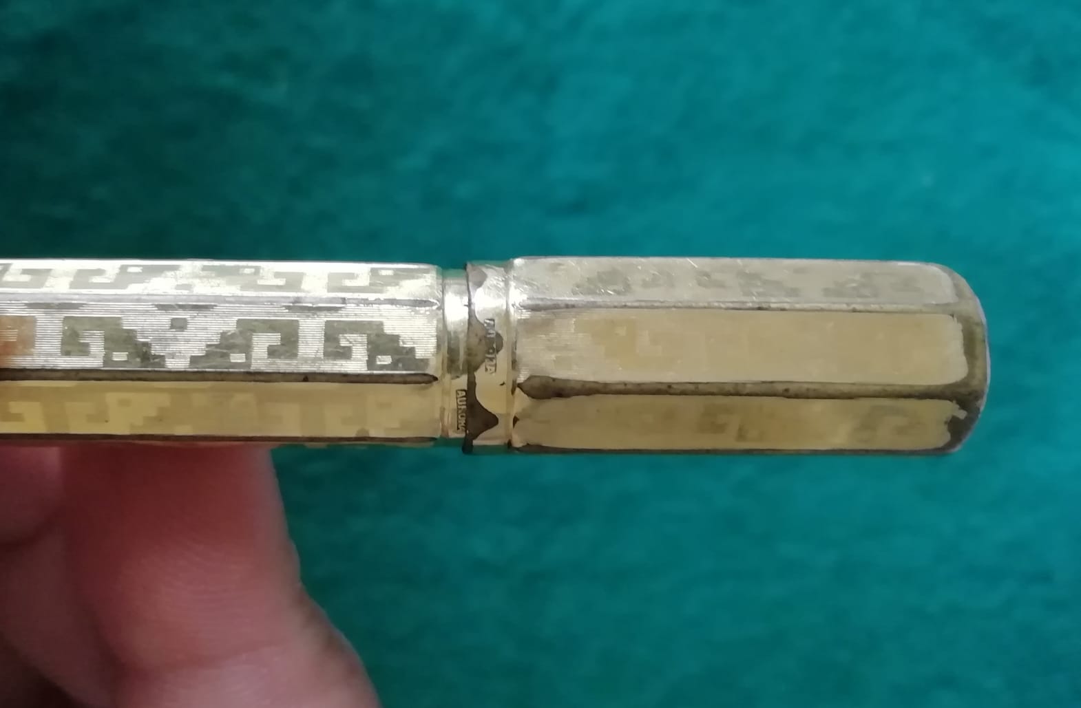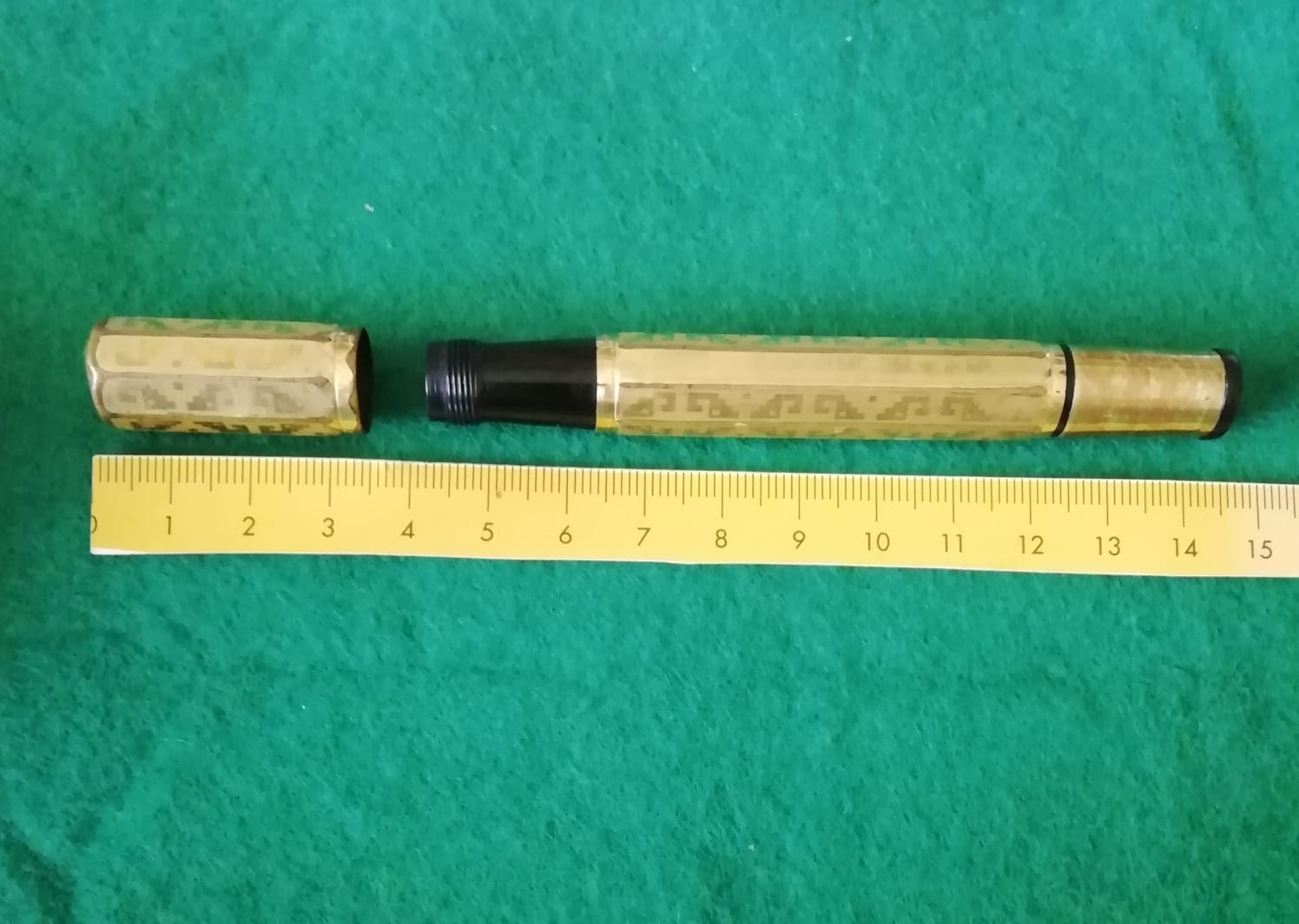 Un mio amico, istigato da me è andato a rovistare nei vari cassetti ed ha ritrovato una stilografica del nonno, acquistata a Lugano intorno al 1921. Credo si tratta di un Aurora rientrante RA, l'unica cosa che si nota è il pennino piegato...