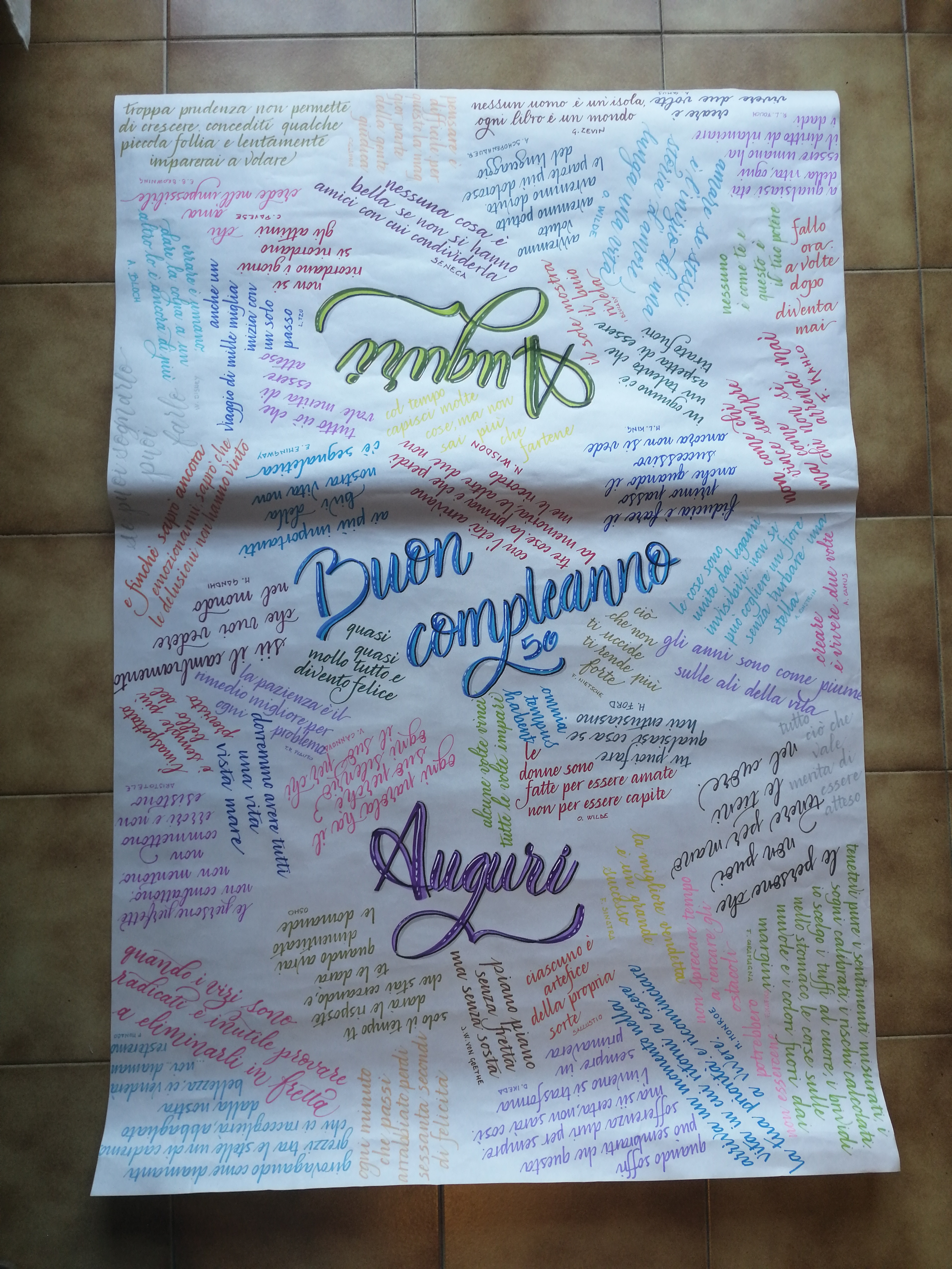 Bellissimo! Per i 18 anni di mia figlia feci una cosa simile ma assai meno artistica (solo scritte buffe). Lei però la carta l’ha strappata! :D Ti consiglio, a lavoro finito, di fargli delle foto da tenerti per ricordo. :thumbup: :mrgreen: