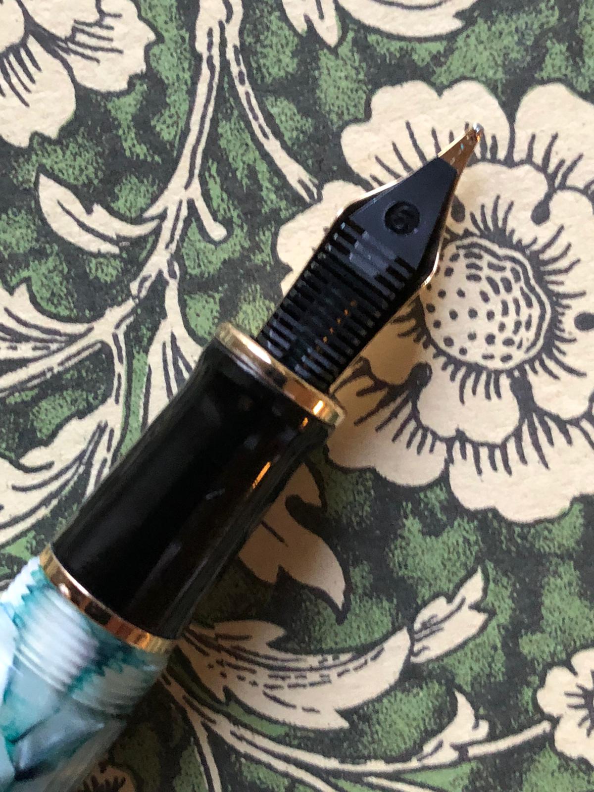 Per la Jinhao, anche qui si è trattato di tentativi, tra varie penne che ho provato (tra cui anche le Moonman M600s) la Centennial sembra essere quella che accolga meglio il pennino Omas. L'alimentatore funziona molto bene, e insieme al pennino B il flusso è goduriosamente copioso (cosa che a me in alcuni casi non dispiace). L'ho usata di recente per appunti molto veloci su un blocco A4, scrive senza perdere un colpo, il converter finisce fin troppo presto!!