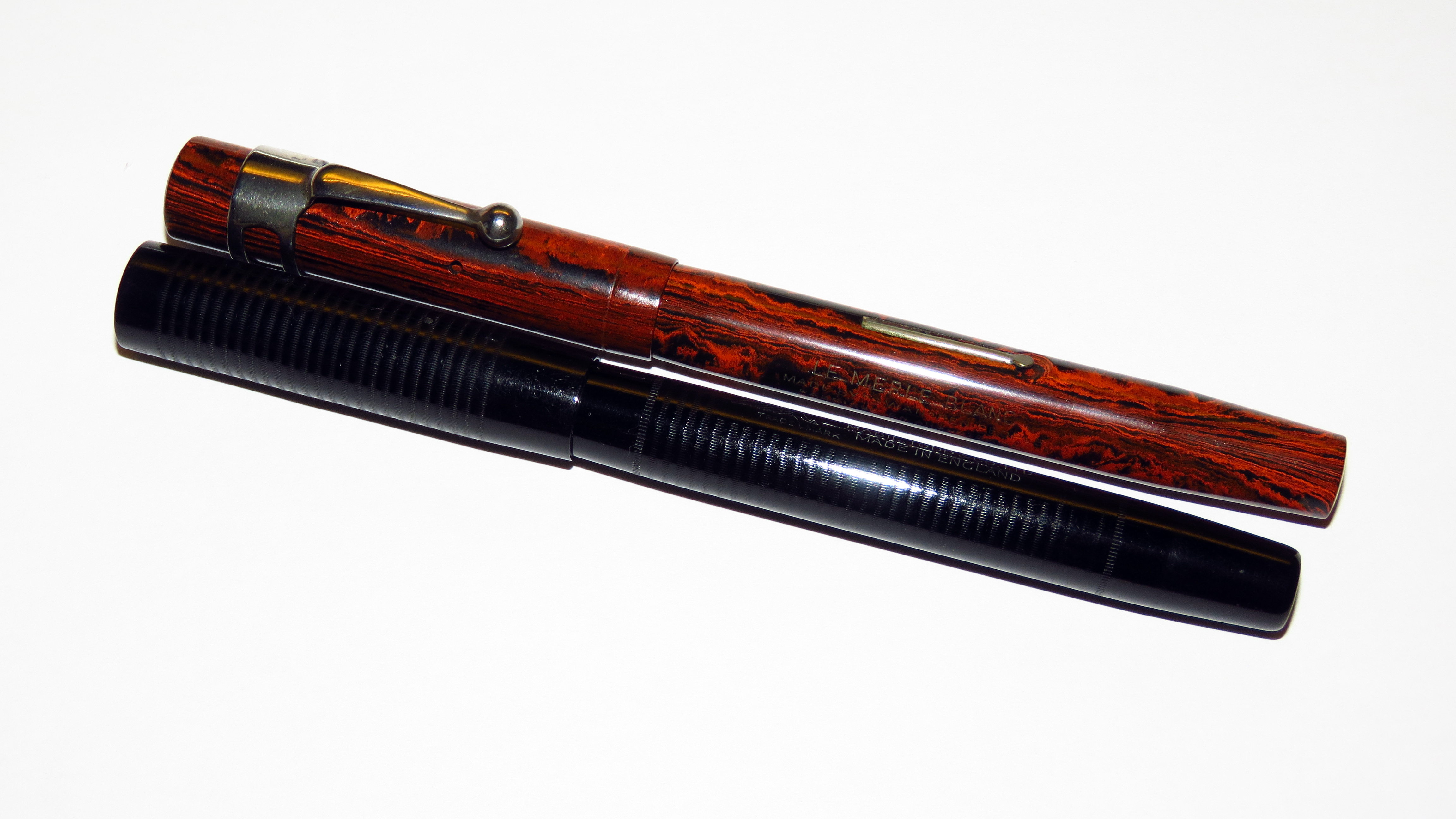 Mostro in foto una Mabie Todd "Le Merle Blanc", sottomarca e modello destinato al mercato francese. Al momento del recupero si trovava in pessime condizioni estetiche, nella foto no.5 si vede un angolo del cappuccio con l'ebanite non ancora trattata, ma tutto sommato in uno stato di "potenzialmente funzionante".