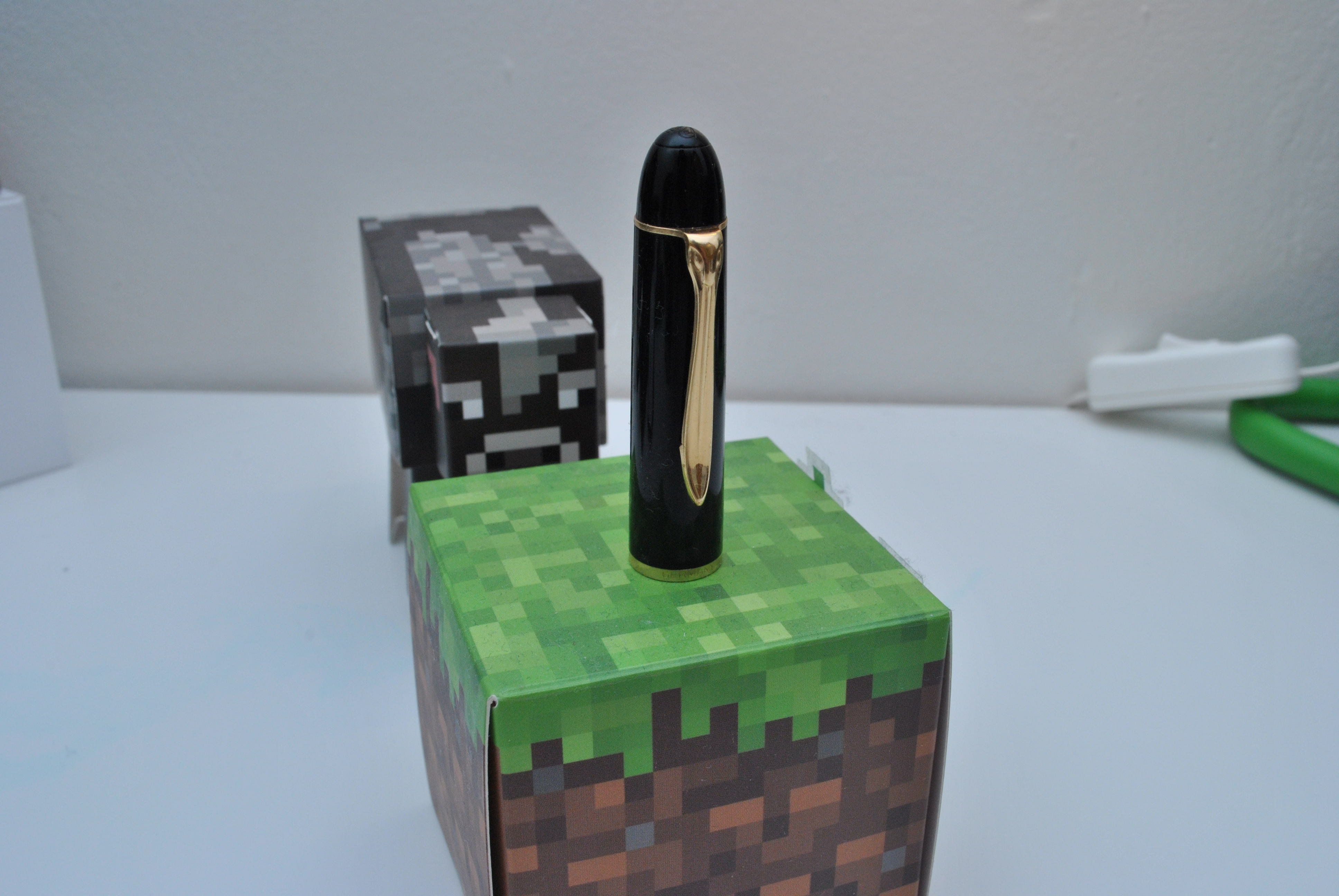 La penna è lunga circa 125mm chiusa e 143mm con cappuccio calzato pennino incluso, il cappuccio è lungo 6cm ed ha un diametro massimo di 1.2cm, il fermaglio è lungo 3.5cm, l’intero fusto è lungo 9.5cm di cui 1.9cm la sezione, 5.7cm ca. Il fusto a righe verdi e trasparenti e il restante per il fondello.