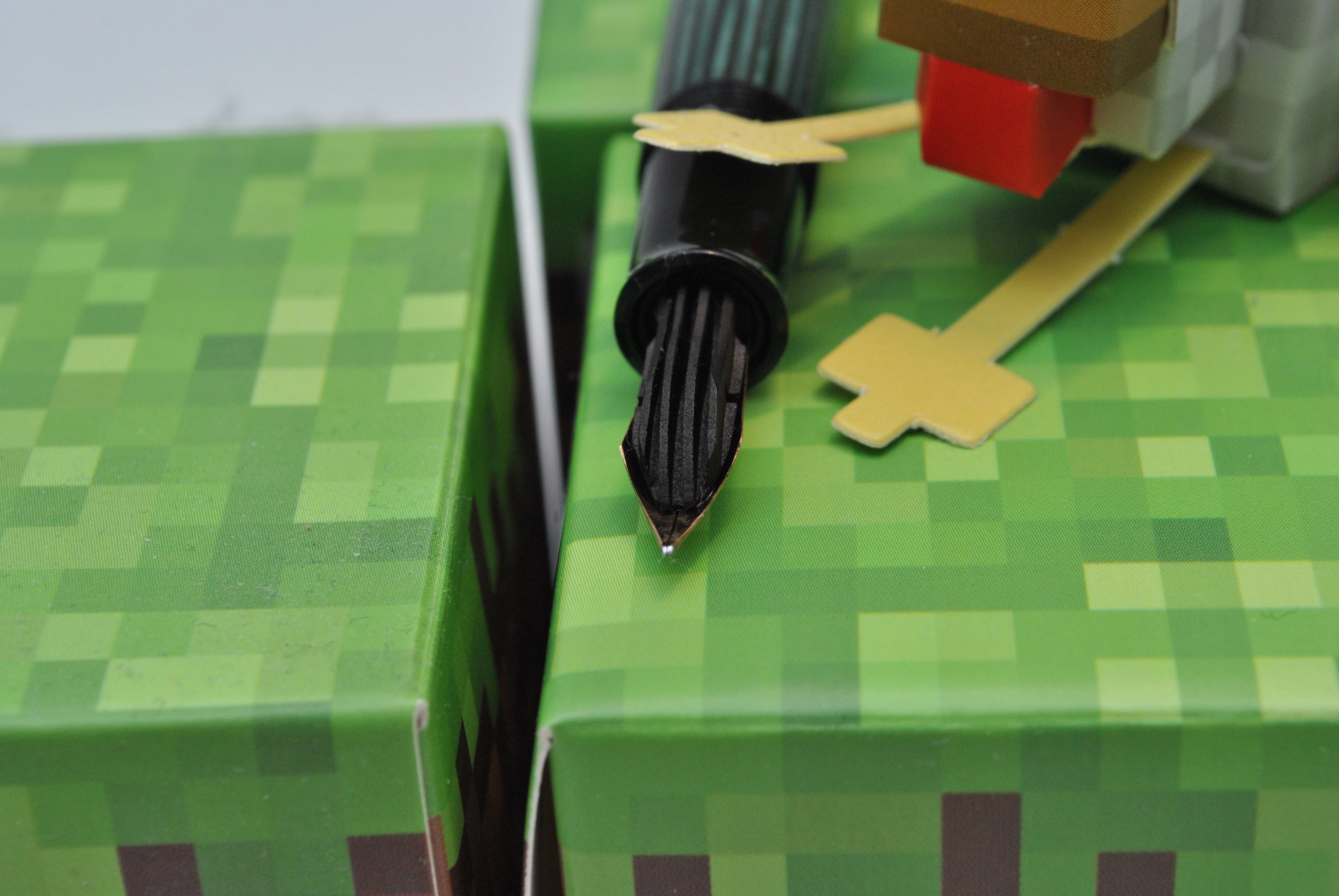Fred05, figlio del nostro amico del reparto tecnico Maxpop 55, quando sono andato a trovarli non s’è fatto i cavoli suoi e in presenza del mio riparatore preferito ha osato pronunciare la frase “Ah, ma questa penna gratta parecchio!”. Da lì è stata sequestrata dal suddetto e dopo un’oretta circa di lavoro, niente: la penna continuava a grattare. Abbiamo persino notato che vicino la punta c’era una specie di piegatura ed abbiamo pensato ad una ri-rodiatura o ad una modifica fatta male.