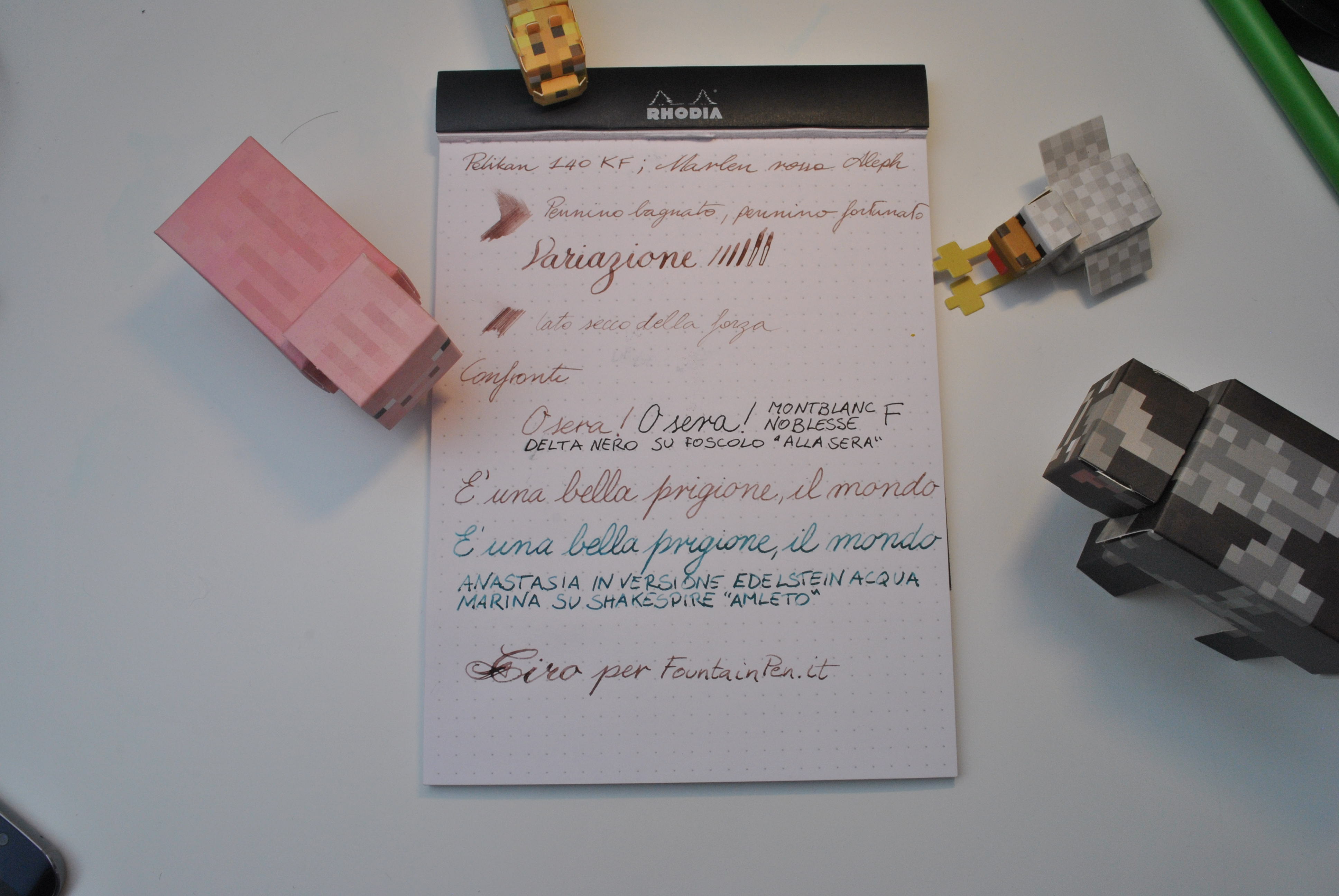 Di seguito la prova di scrittura su carta Clairfontaine da 80g/mq puntinata del blocco Rhodia. In sostanza una penna in grado di adempiere a tutti i nostri bisogni scrittori tranne uno: il fatto che noi di penne ne vogliamo molte altre a prescindere!