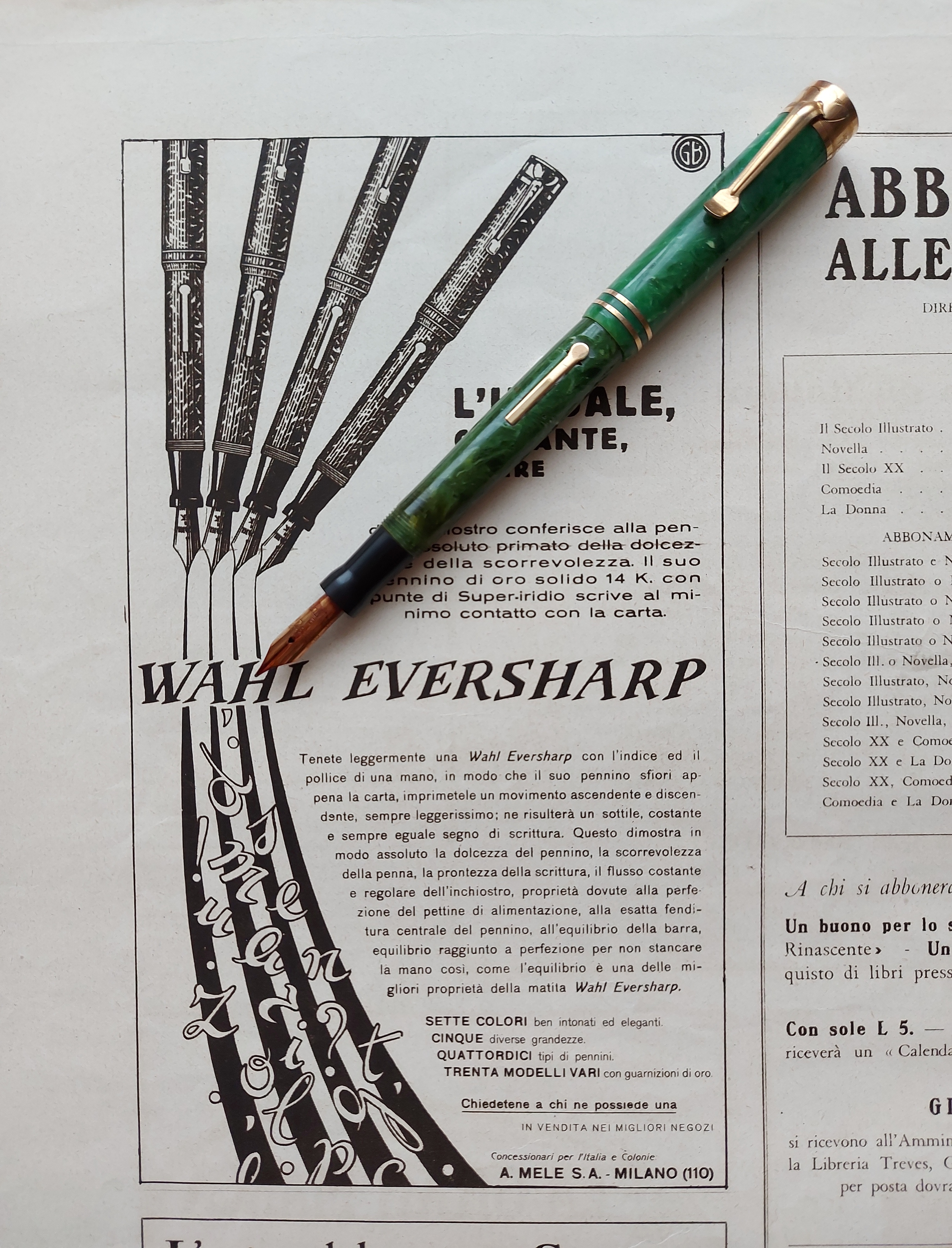Il catalogo consisteva di oltre 100 pagine illustranti le più svariate categorie merceologiche: abbigliamento, posateria, valige, gioielleria, ed anche penne stilografiche. Quelle che pubblicherò sono soltanto le pagine relative a queste ultime, scansionare tutto il volume avrebbe preso un tempo eccessivo, e sono indietrissimo nella pubblicazione di un sacco di materiale.
