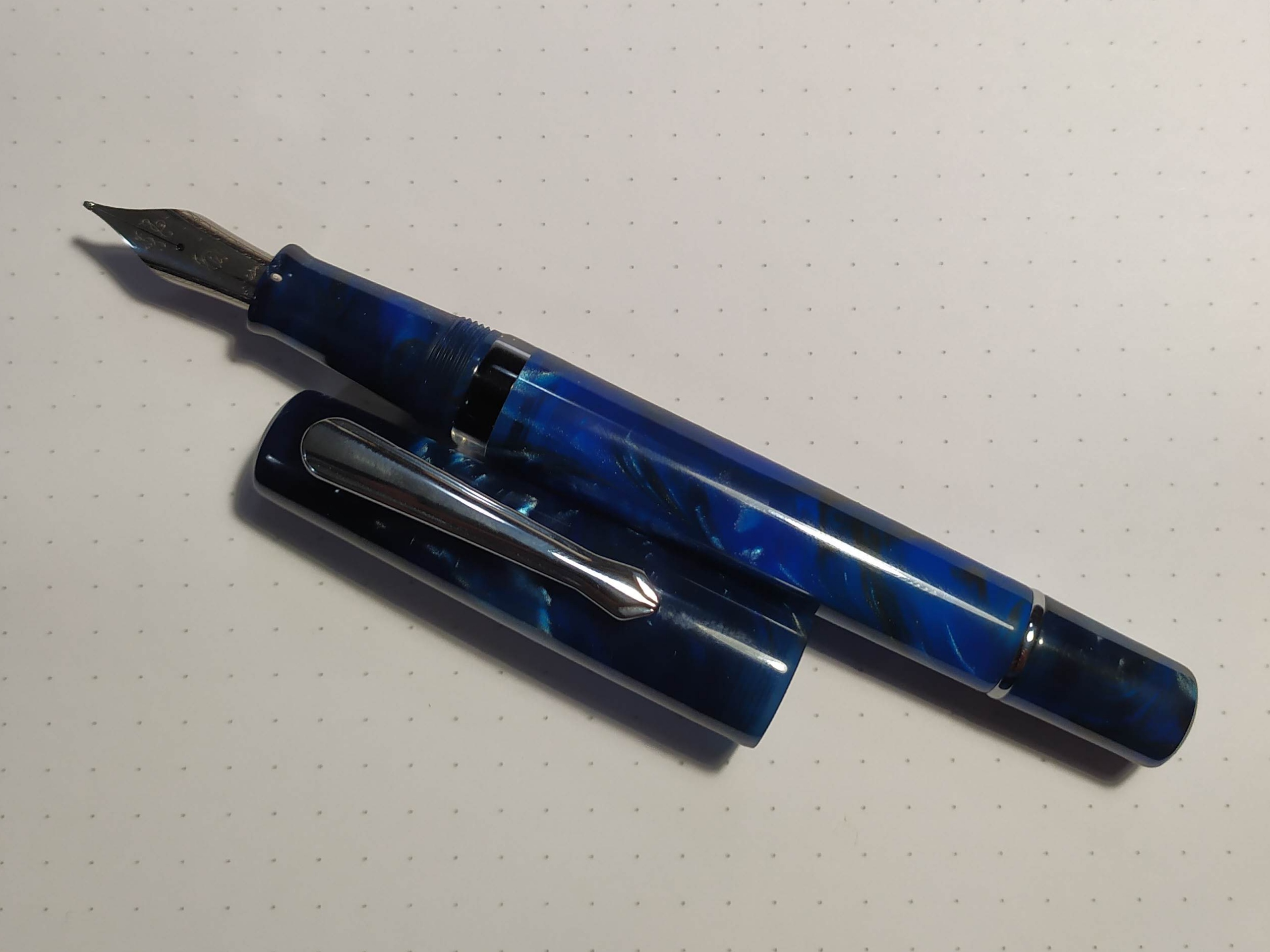 Ne ho una in ebanite da oltre un anno e devo dirti che ne sono molto soddisfatto. Scrive bene, senza perdere un colpo con il suo pennino B, bello rotondo.