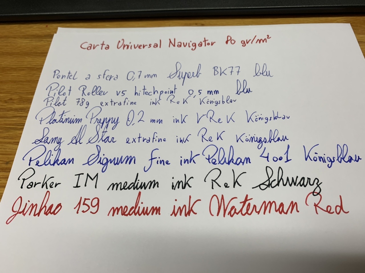 Aggiungo qualche foto comparativa con carta Pigna Style (blocco) e carta Universal Navigator da fotocopie (molto assorbente)