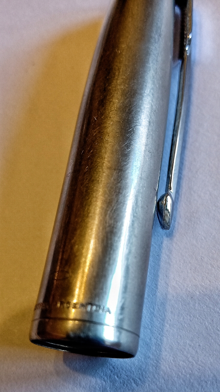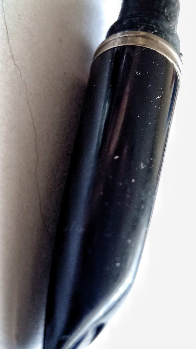 At a first glance the fountain pen seemed to be in good condition, lacking only a cleaning and polishing of the Lucite surfaces, so after disassembling it, two days in neutral detergent and a good brush for the internal parts should pay to take it to terms...